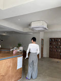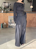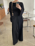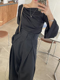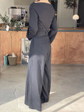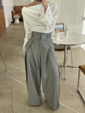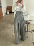 Women Long Pants Wide Leg Pant Solid Casual Regular Loose Simple Elegant Splice Tight High Waist Capris Autumn Trousers