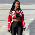 Women New Faux Leather Fashion Jacket Hipster Letter Print Autumn Casual Sporty Wild Streetwear Uniform Trend Female Crop Coat