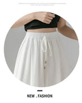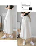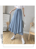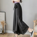 Women Pants Culottes Elastic Wide Leg Irregular Hem Double Layers Korean Trousers Summer Casual Loose Pleated Pants