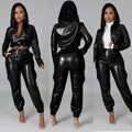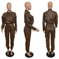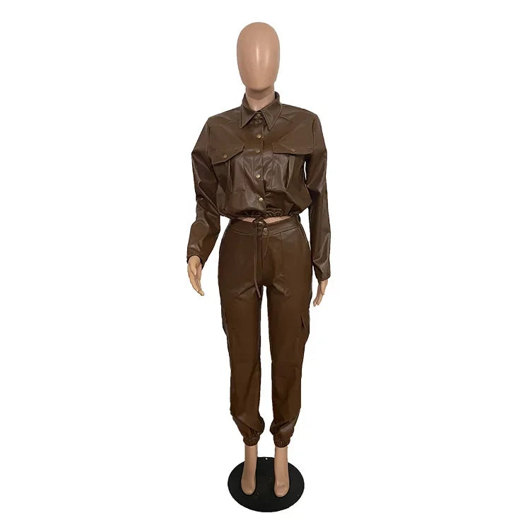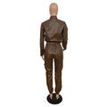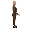 Women Pants Sets Two Piece Long Sleeve Cardigan Hidden Breasted Solid Zipper Fly Pencil Pants Slim Fit High Street Pockets