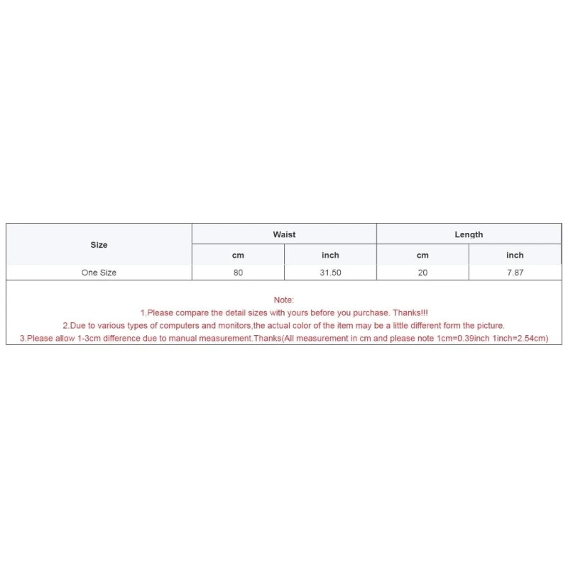 Size:One Size Waist:80cm(31.50inch) Length:20cm(7.87inch)