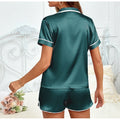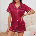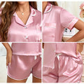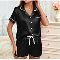 Women Silk Satin Pajamas Set Two-piece Pj Sets Sleepwear Loungewear Button-Down Pajama Women 2 Piece Pijama Homewear Shorts Set