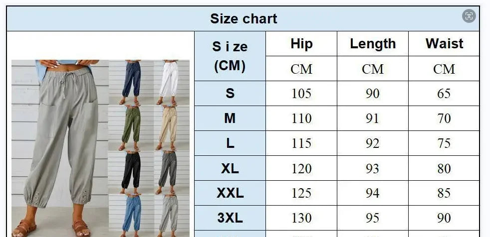 Women Simple Casual Trousers Cotton Linen Solid Color Pockets Drawstring Trousers Summer Thin Ladies Elastic Waist Chino Pants