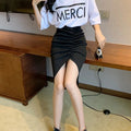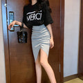 1.High Waist Asymmetrical Midi Skirt, Solid.