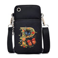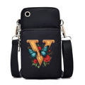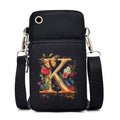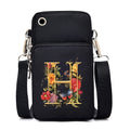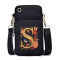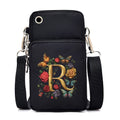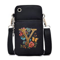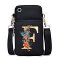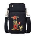 Women Small Crossbody Shoulder Bags Vintage Flower Alphabet Mobile Phone Bag Purse Soft Leather Strap Handbag Mini Messenger Bag