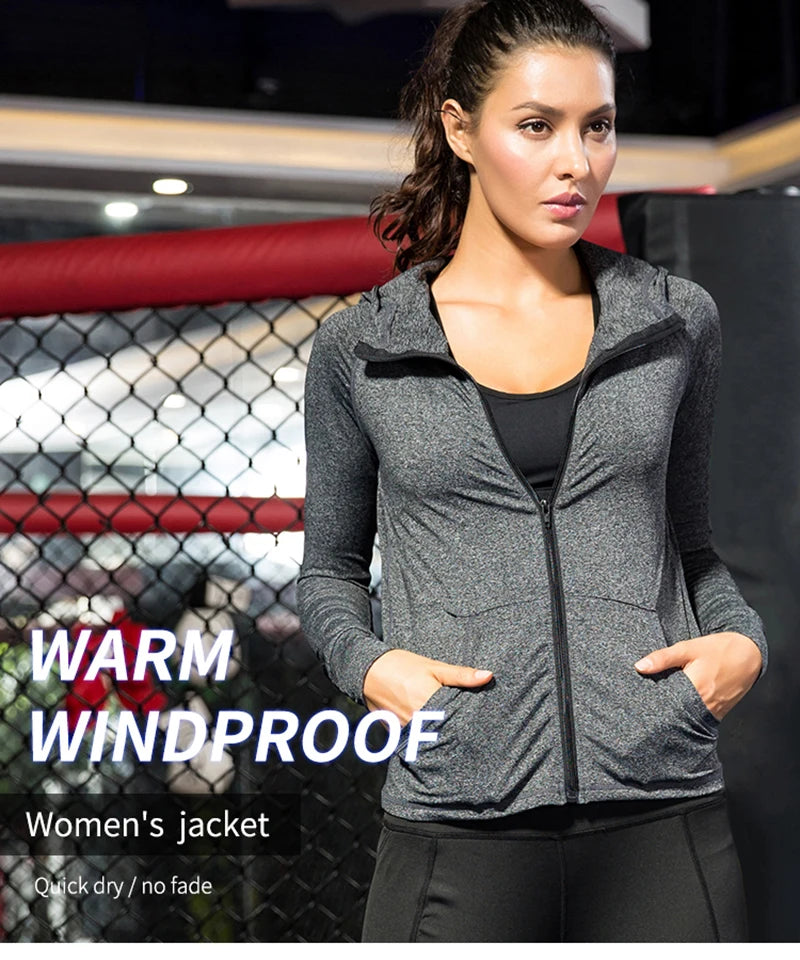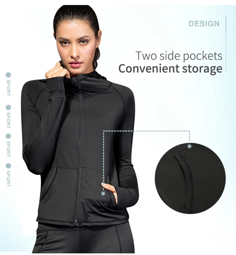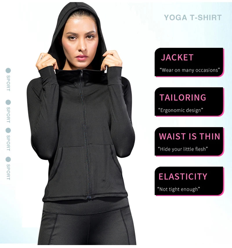 Women Sport Running Jacket Zipper Yoga Coat Training Fitness Yoga Sport Running Hoodies Gym Workout Hooded Top