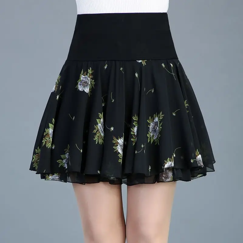 Women Summer Fashion Loose Printing Trend Chiffon High Waist Skirt Women Clothes Casual All-match Appear Thin Trend Short Skirt