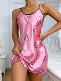 Women Summer Sexy Pajamas Sling Nightdress Open Back Criss Cross Sleep Dress Elegant Romantic Heart Print Sleeveless Sleepwear