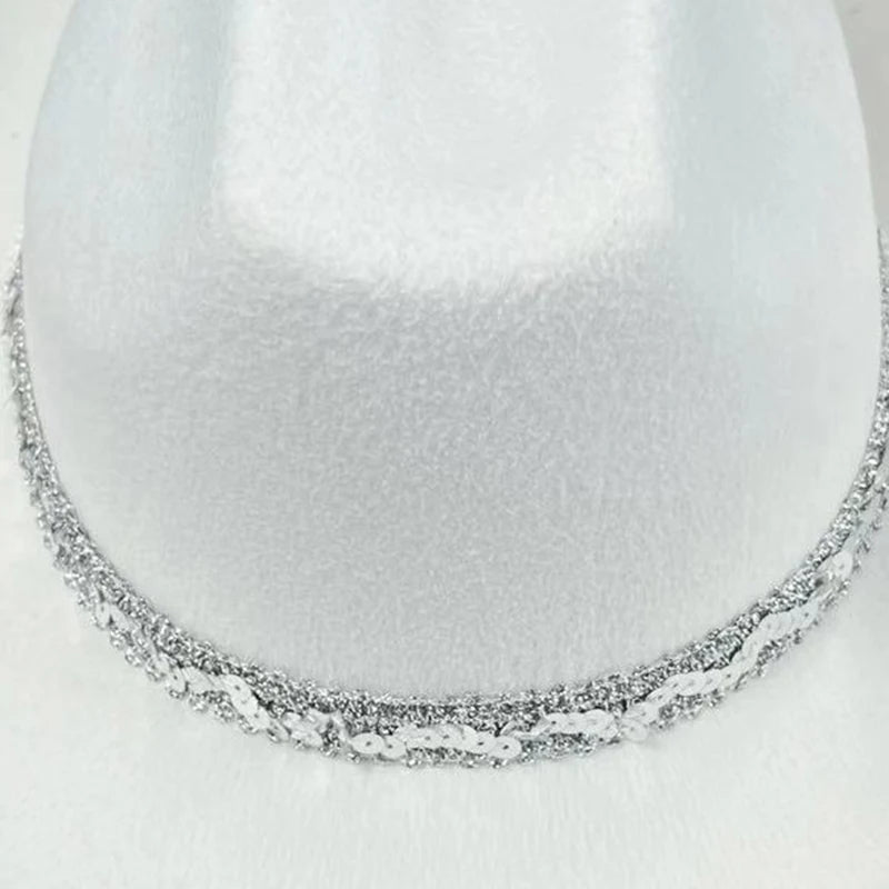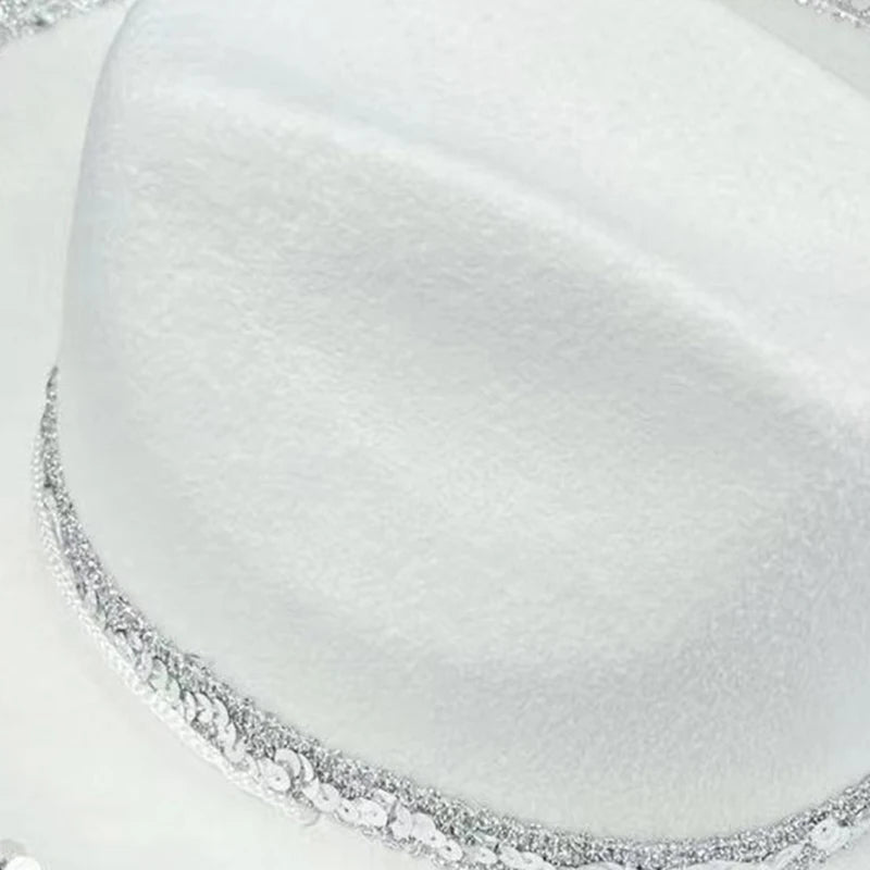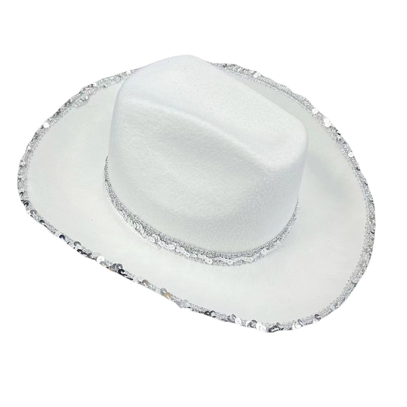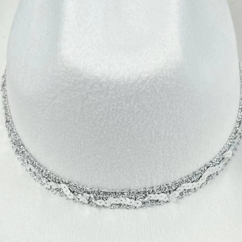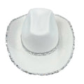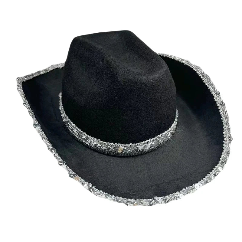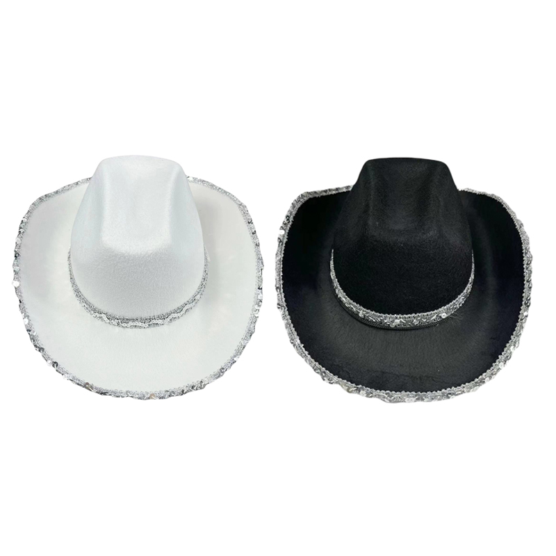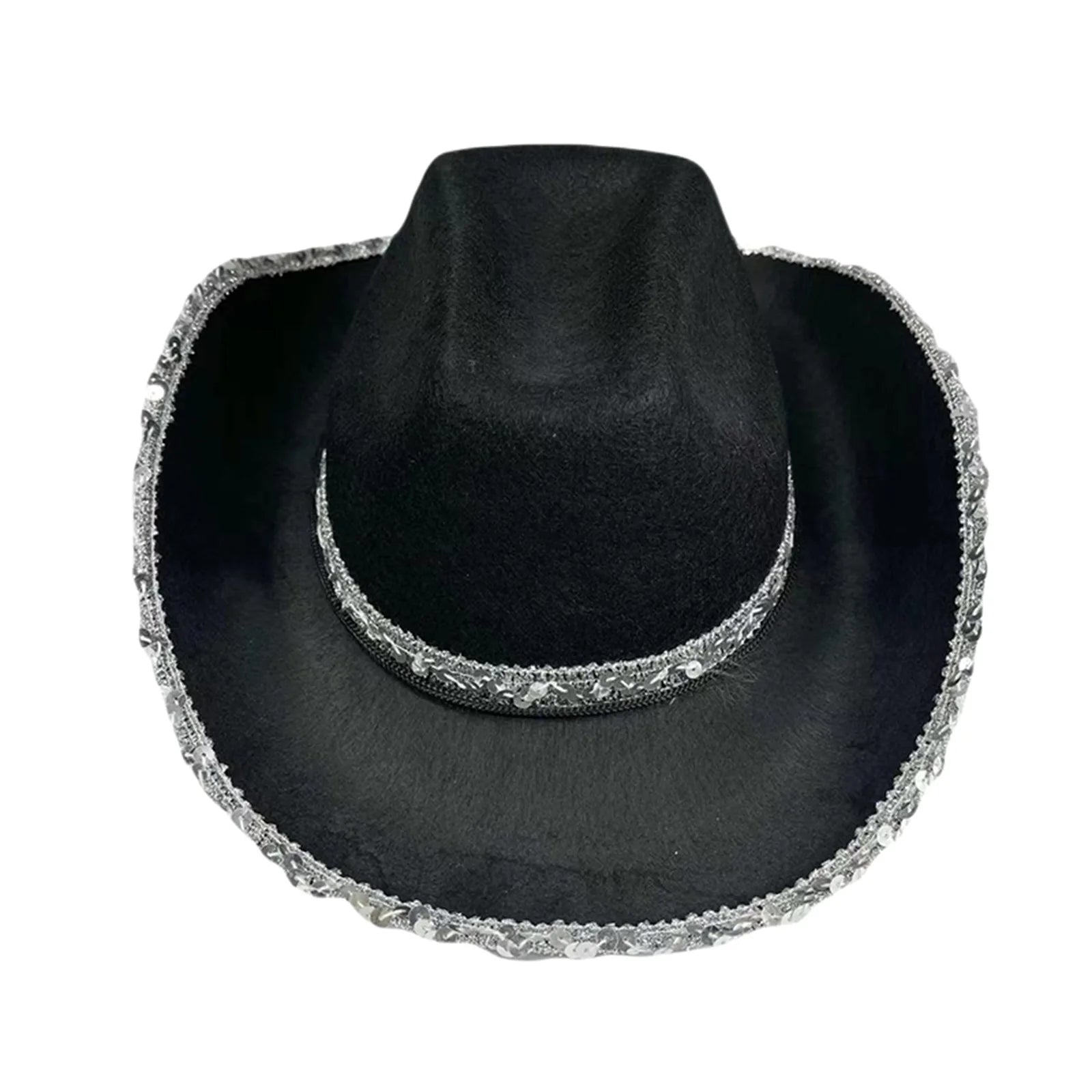 Women Cowboy Hat, Shiny Sequined Wide Brim Western Large Thick Cap for Club PartyIf the hat is deformed, don't be nervous. The material of the hat is special, The deformed position is restored by hand and left for a period of time. It will return as before.
