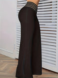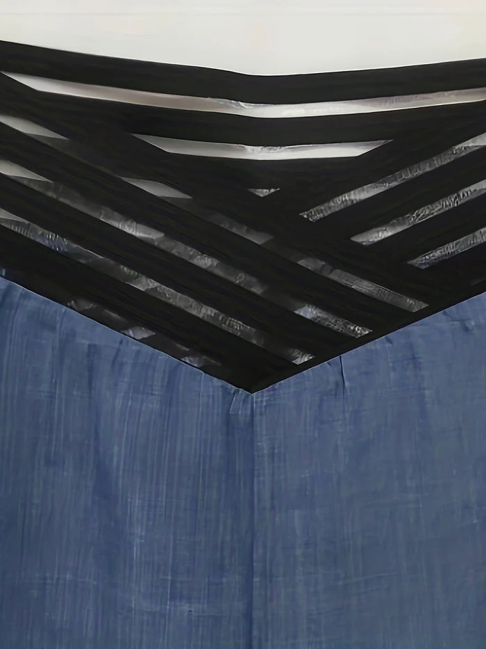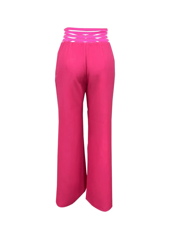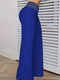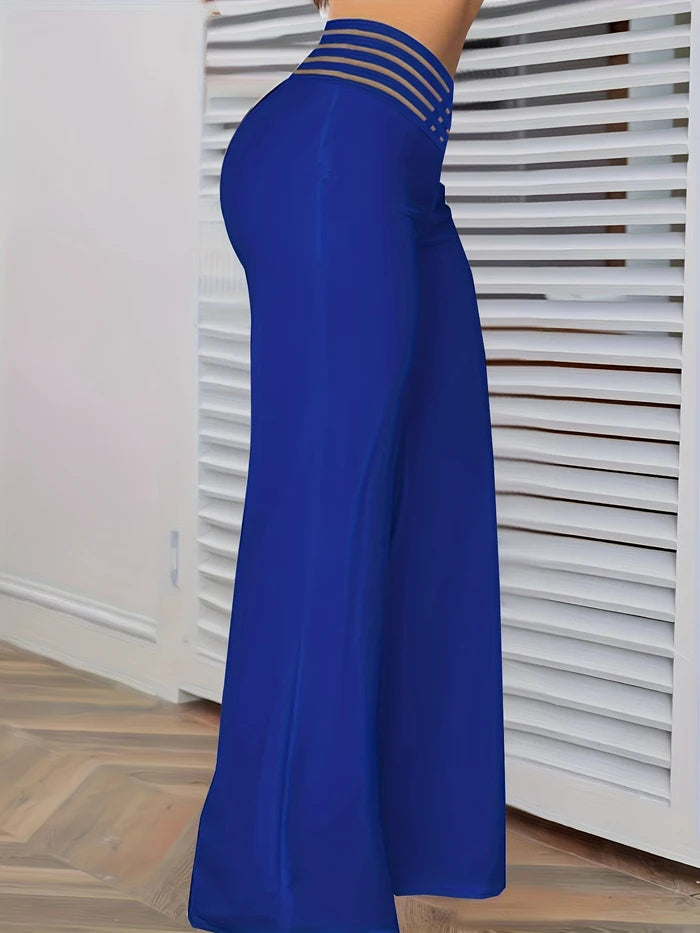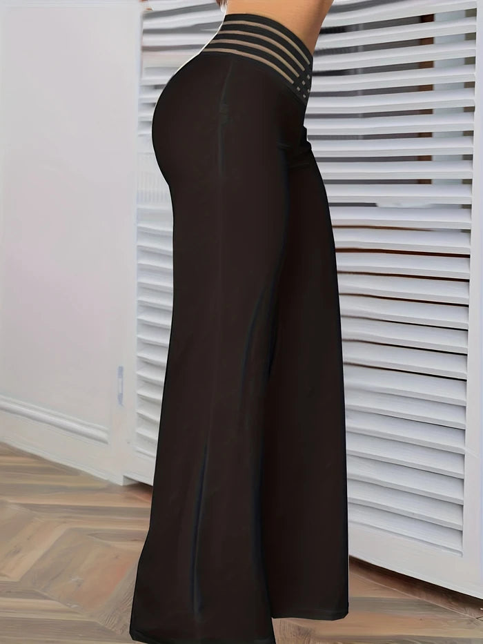 Women Wide Leg Flared Pants 2024 New Y2k Casual Crisscross Sheer Mesh Patch High Waist Trousers Elegant Streetwear Work Pants