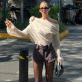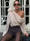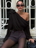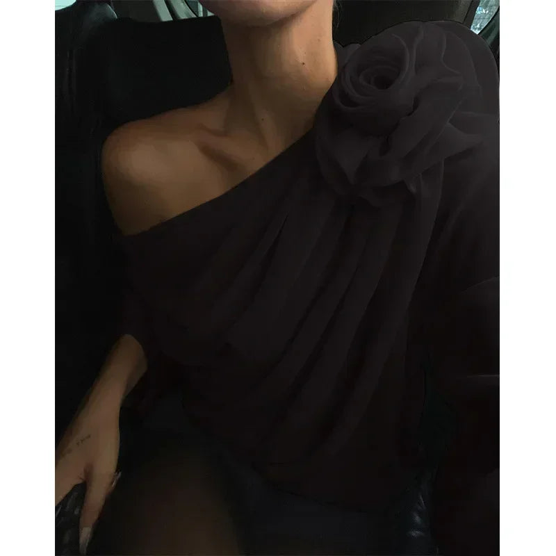 Women's Blouse Sexy Sker Collar Long Sleeve Elegant Tops Ladies Office Blouse Shirts Female 3D Flower Shirts Corset Top