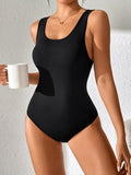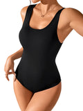 【HIGH-STRETCH】The Womens Bodysuit tops design knit one piece, with high stretchy body-hugging fabric, skin-friendly, moisture-wicking, no see through, body shaping bodysuit for women.