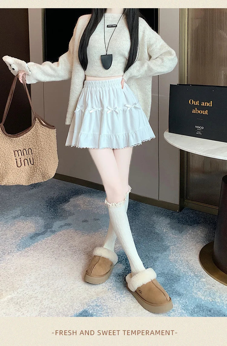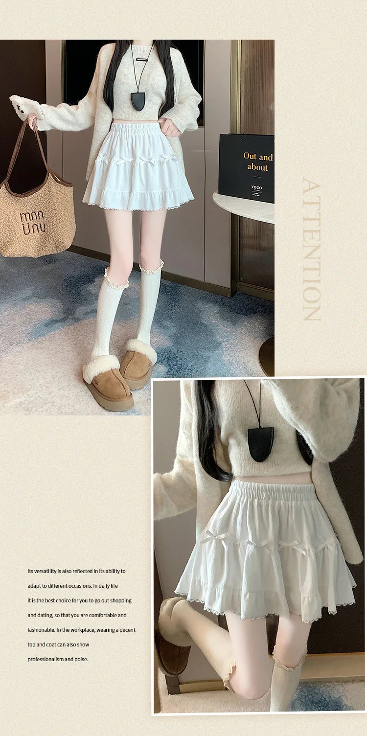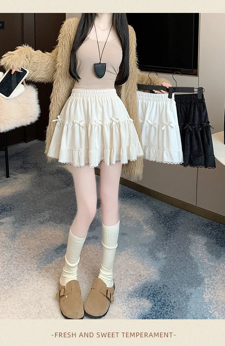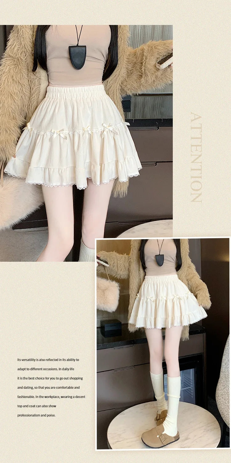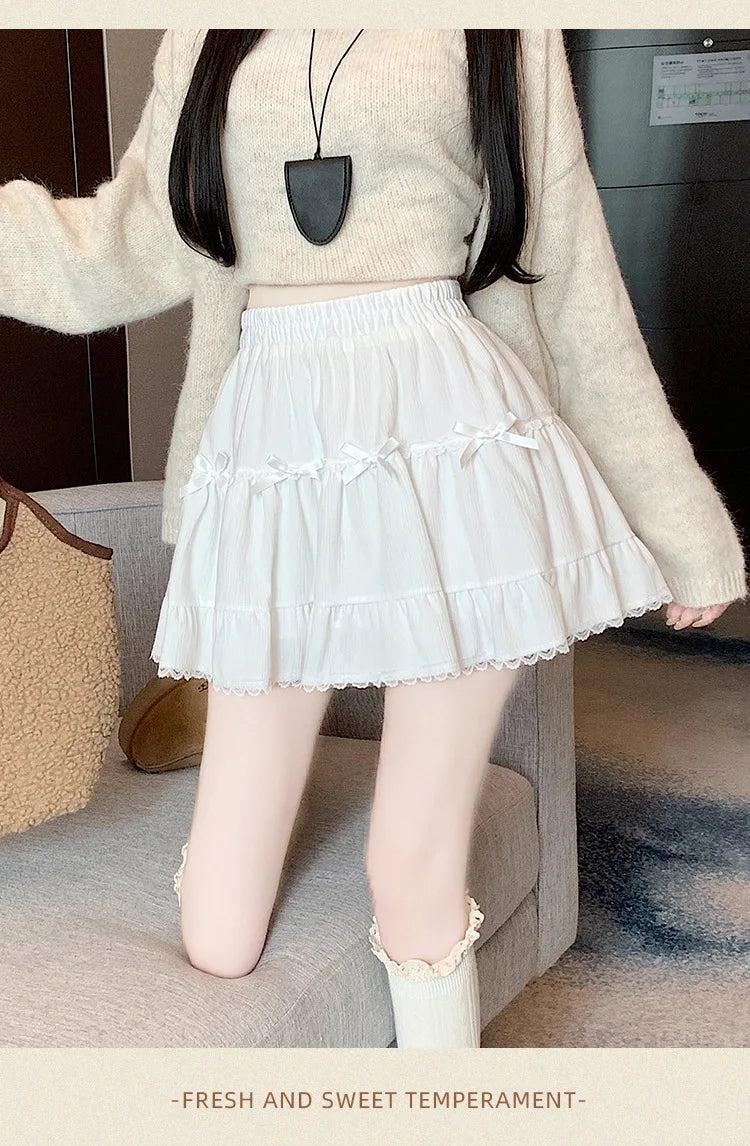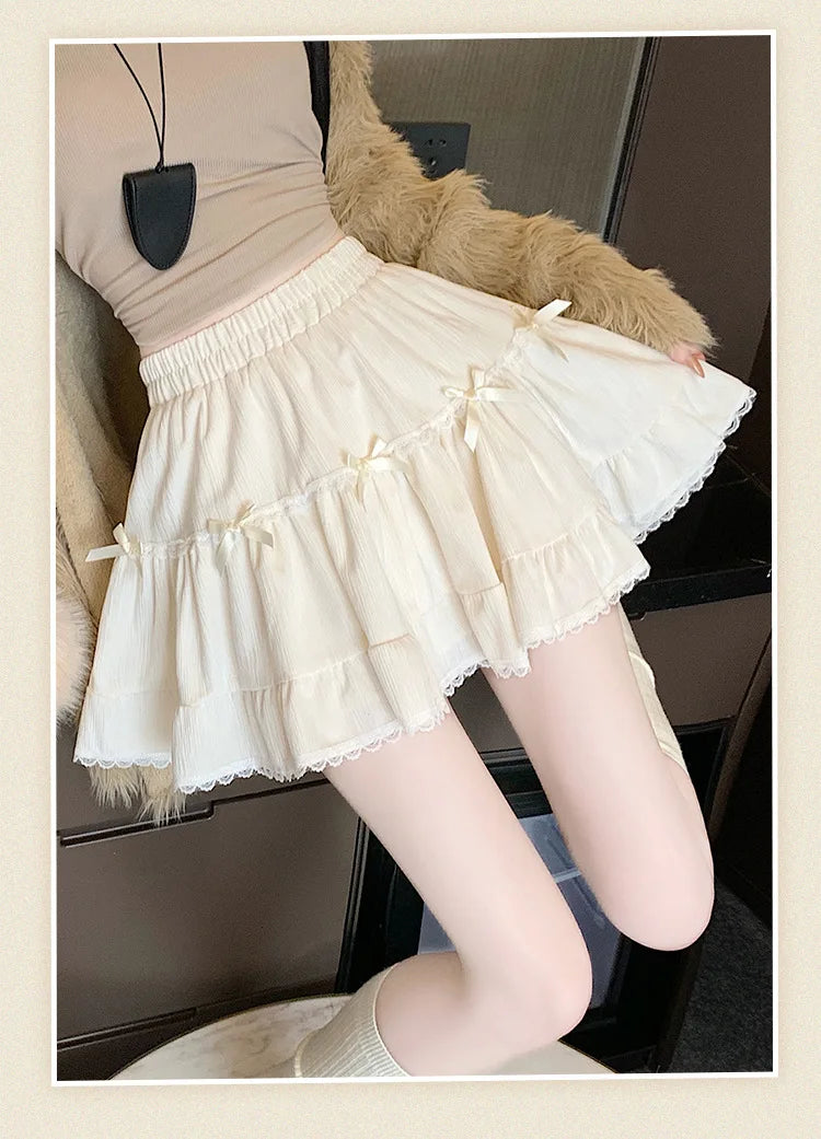 Women's Bow Skirt Spring2025New French Sweet High Waist Cake Lace PuffyAShort Skirt