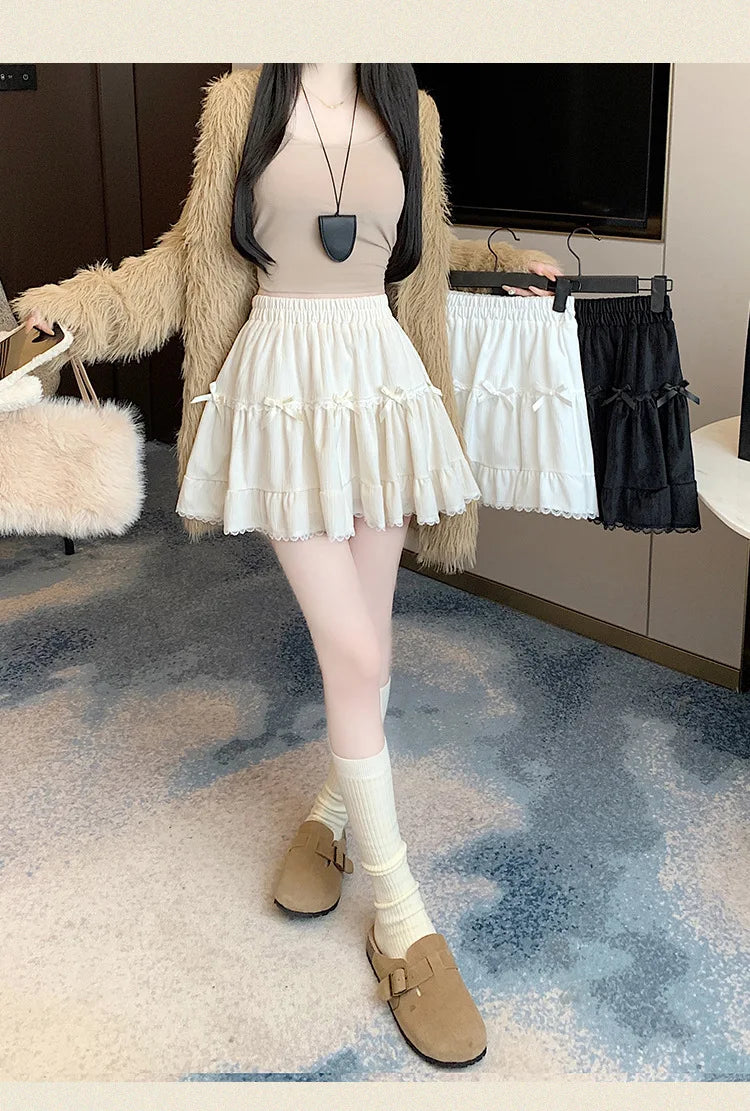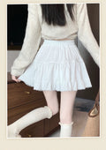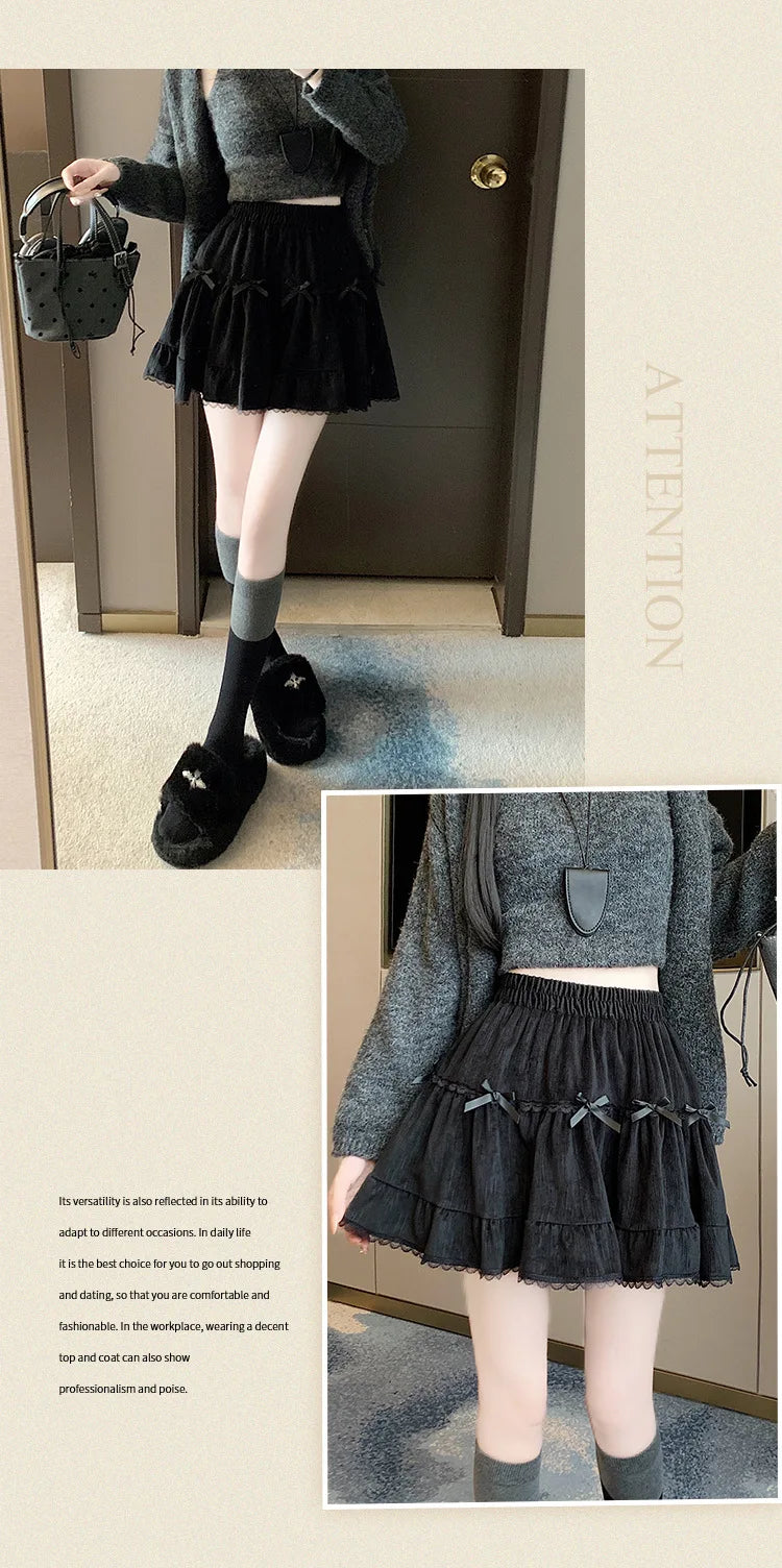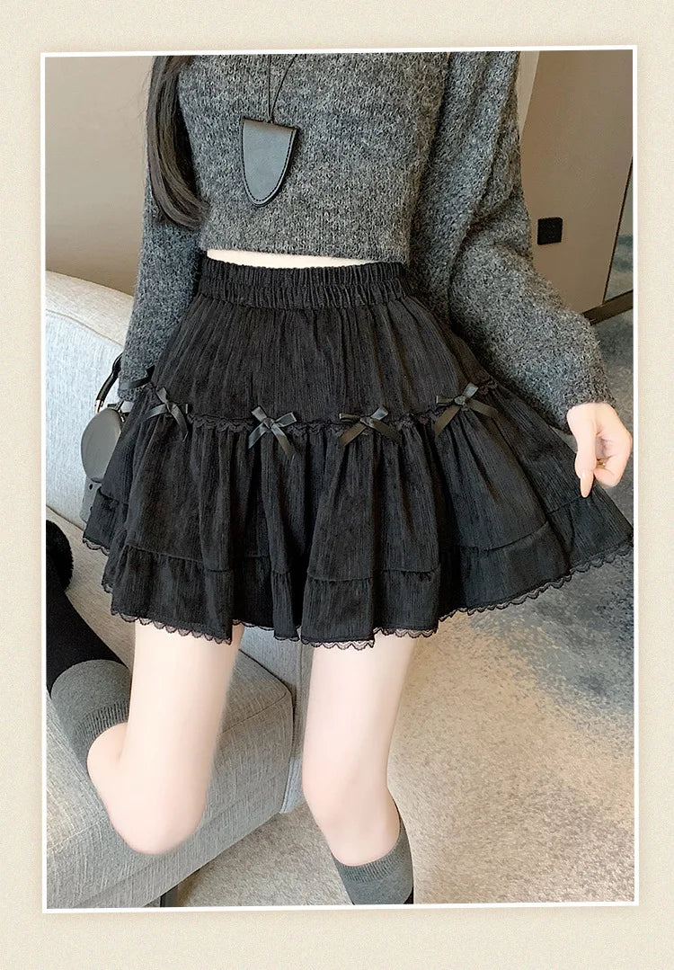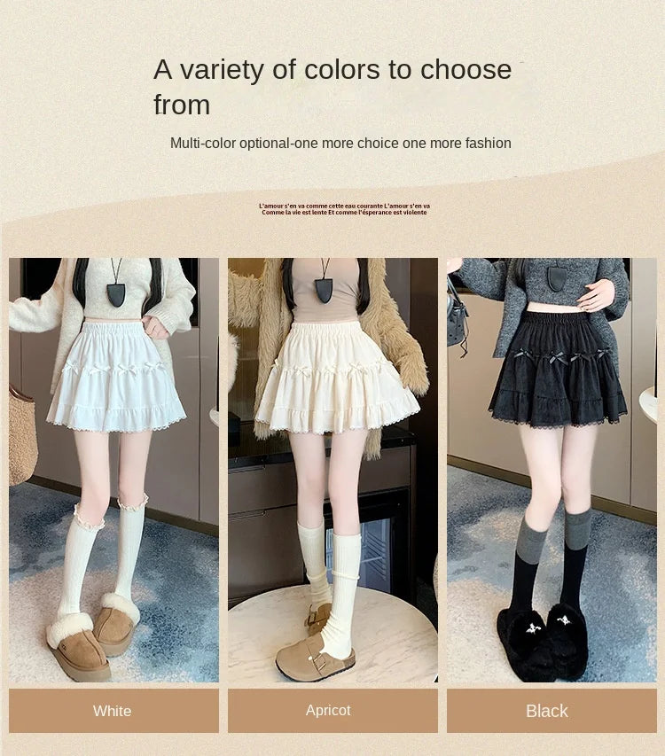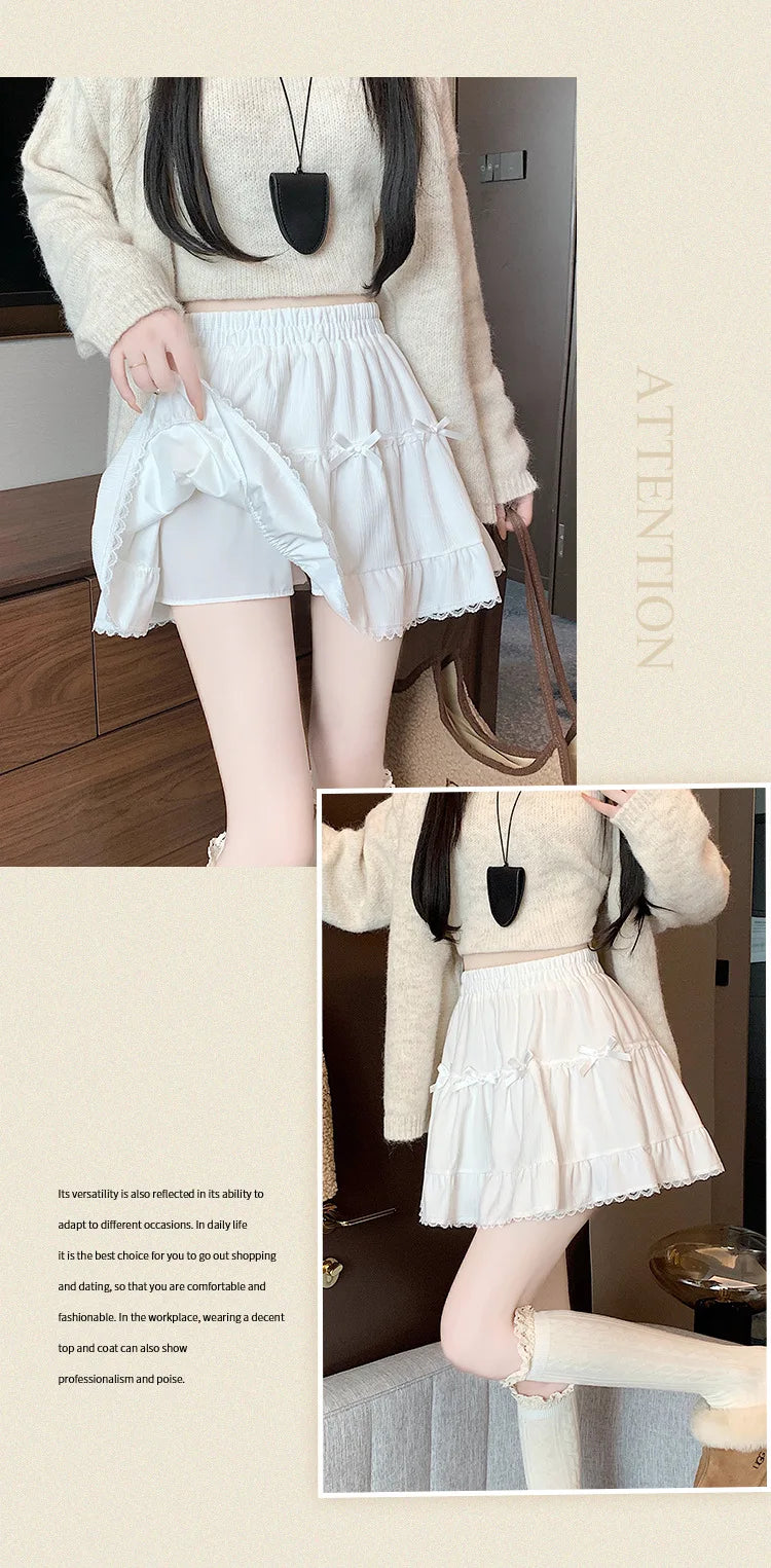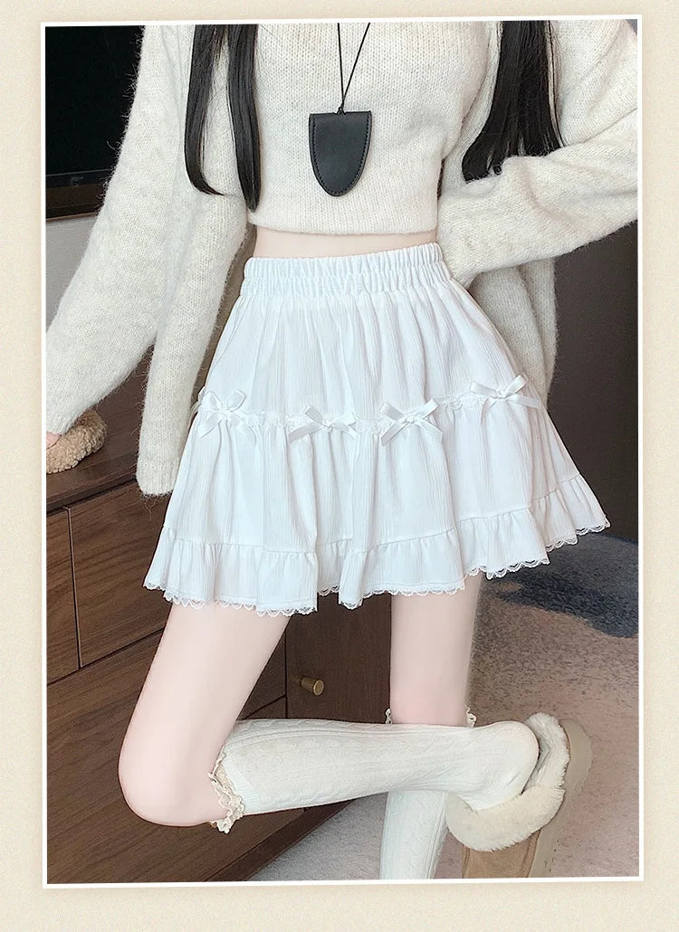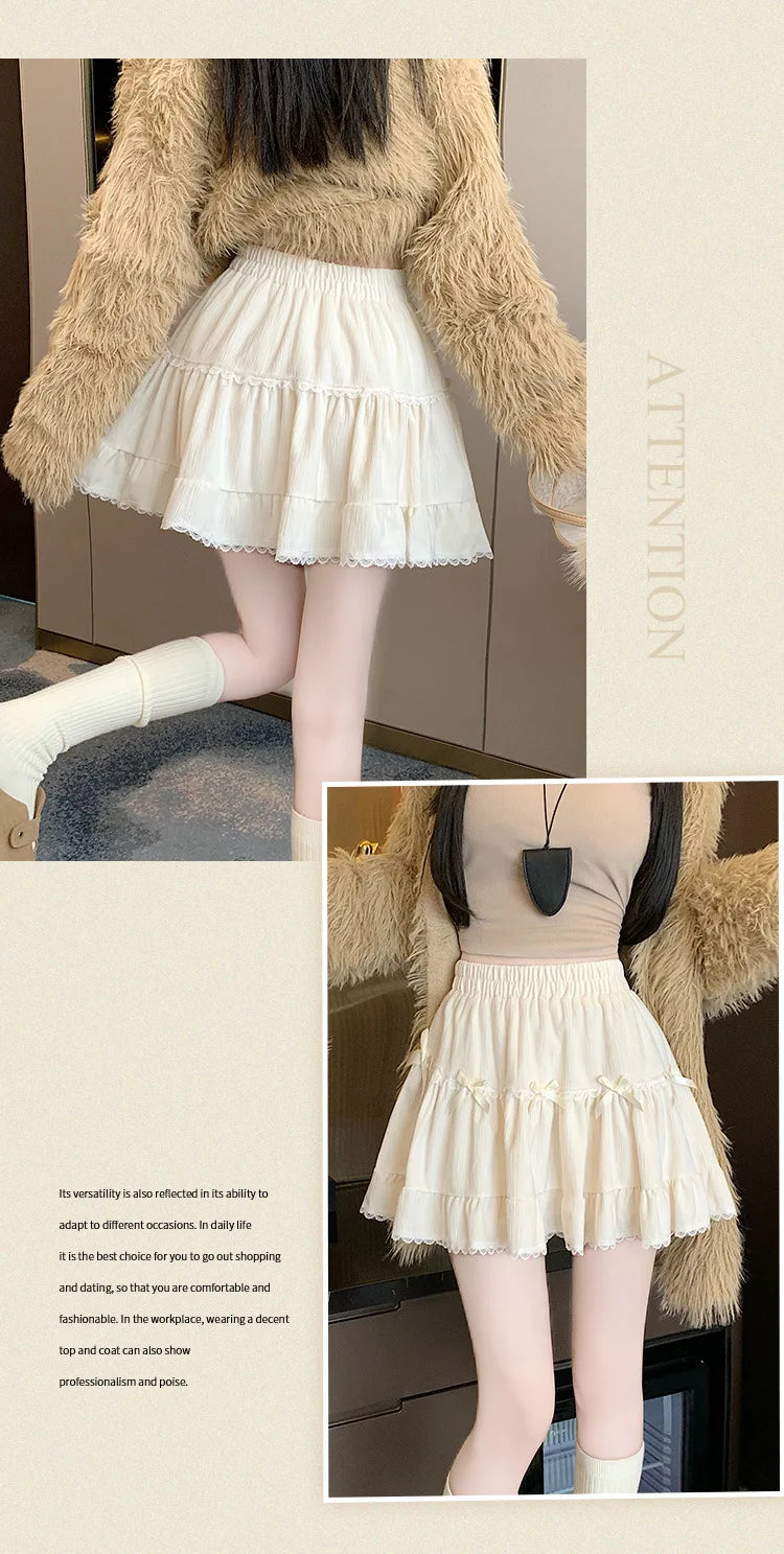 Women's Bow Skirt Spring2025New French Sweet High Waist Cake Lace PuffyAShort Skirt