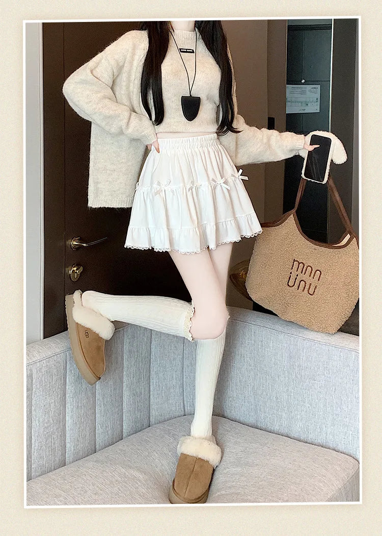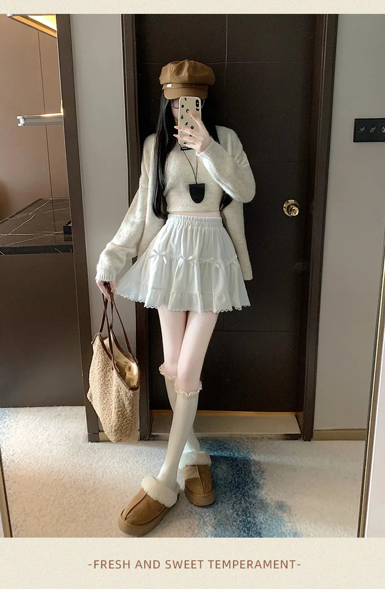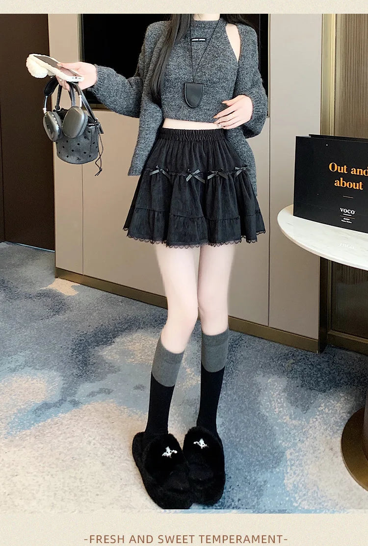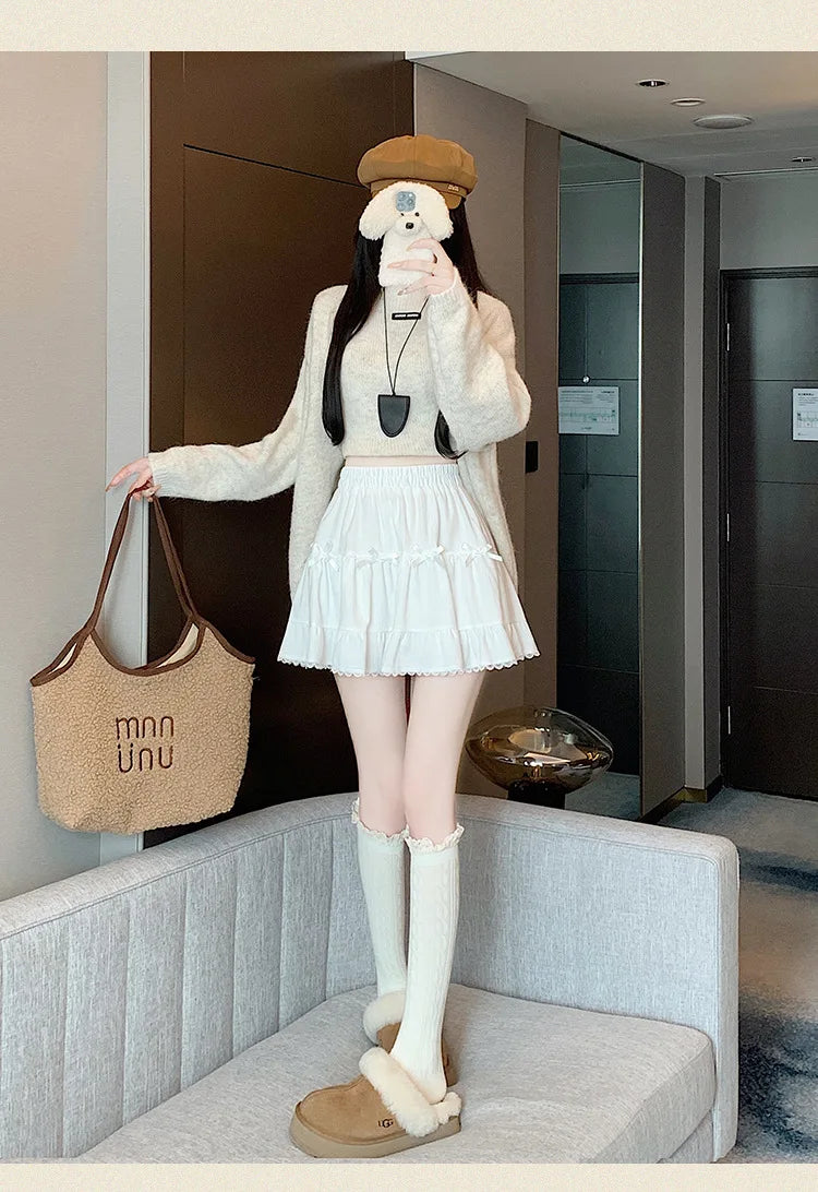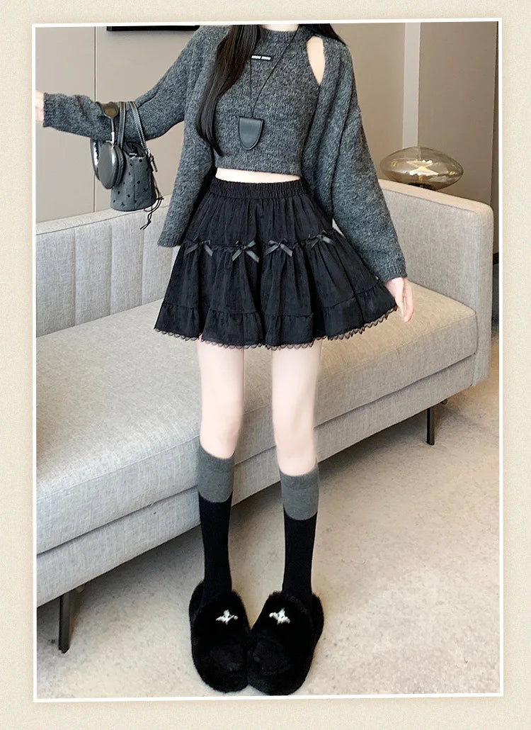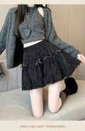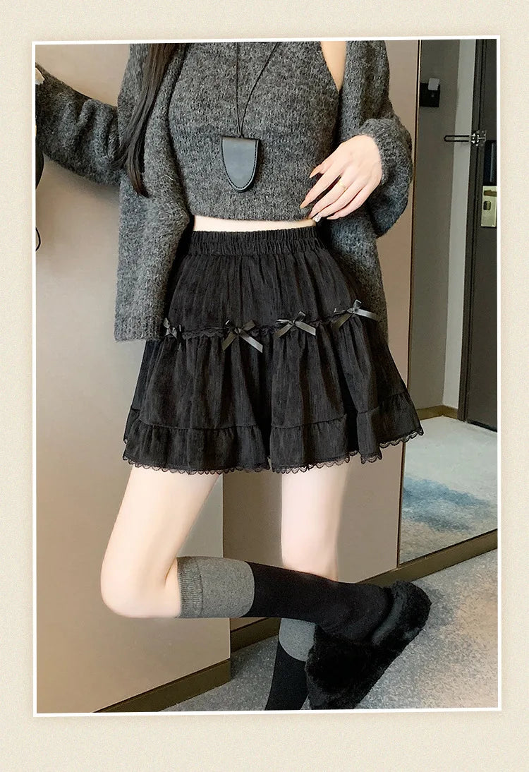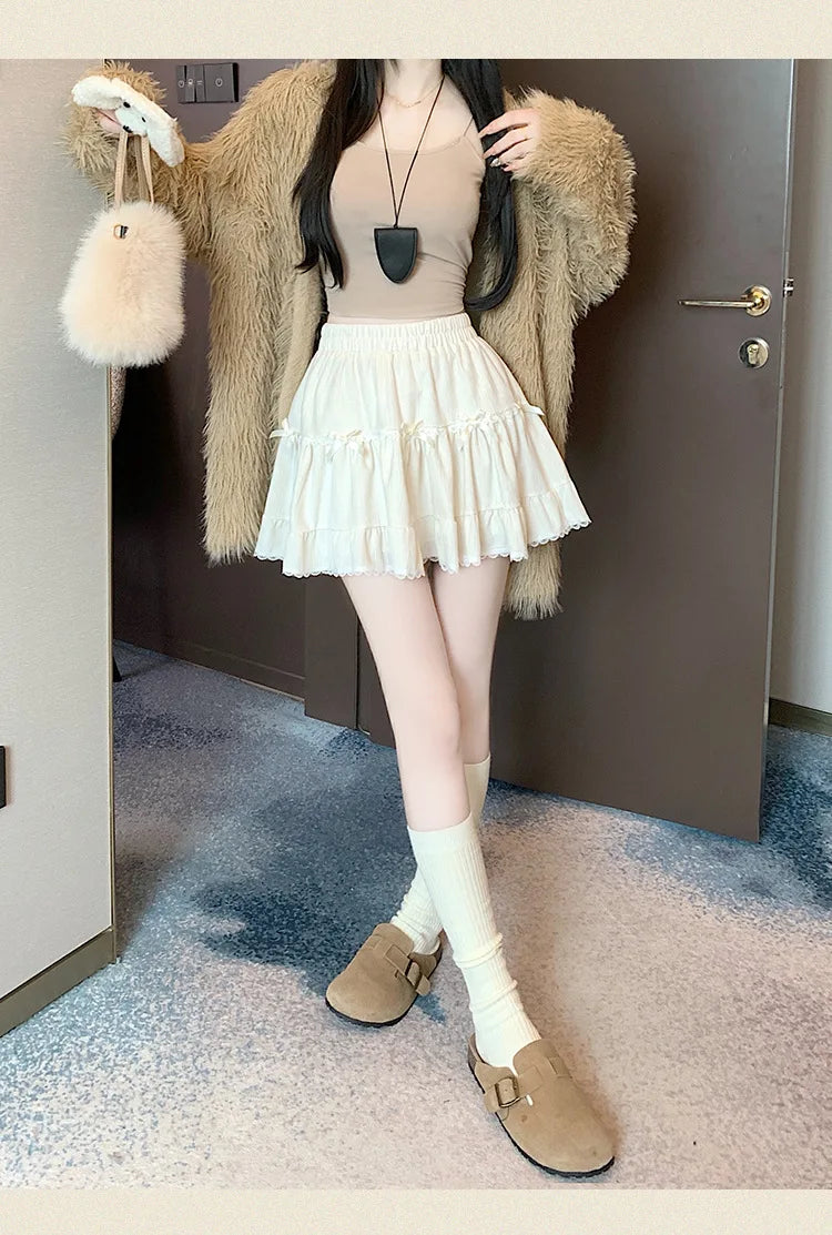 Women's Bow Skirt Spring2025New French Sweet High Waist Cake Lace PuffyAShort Skirt