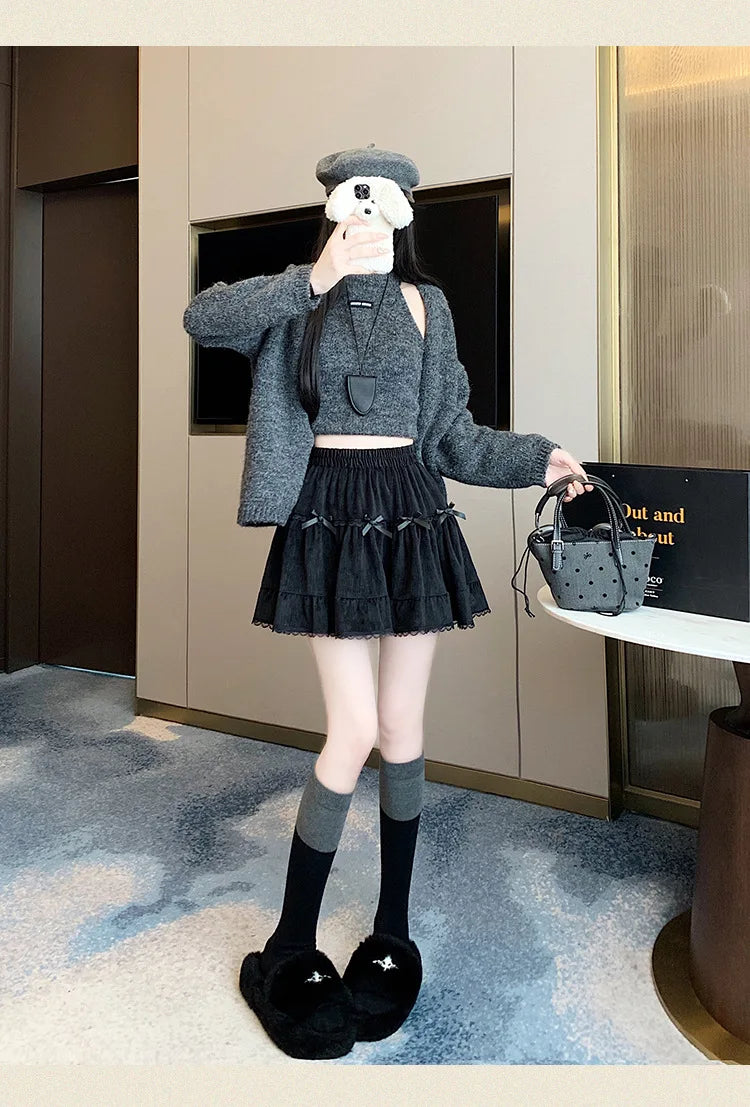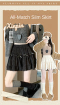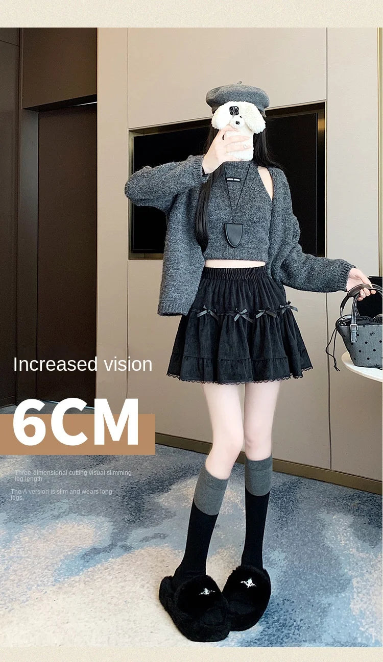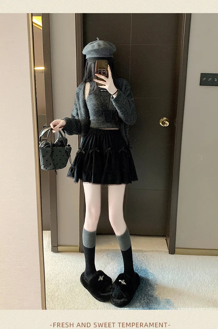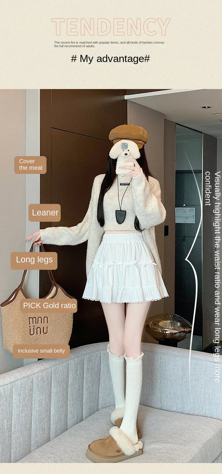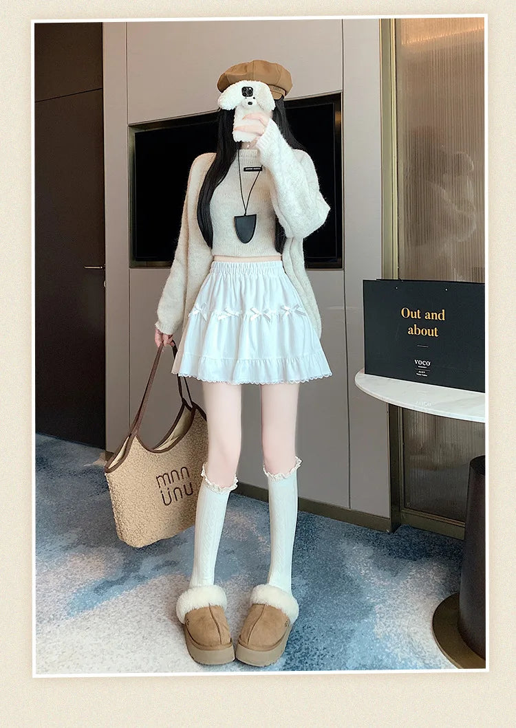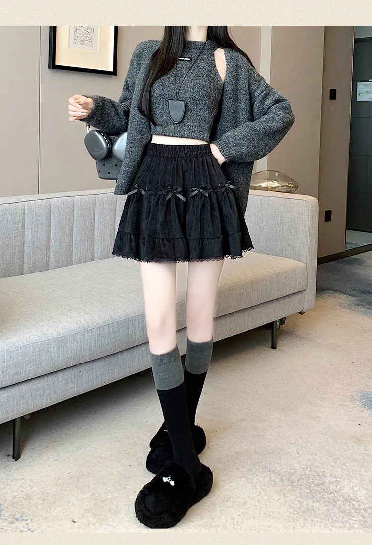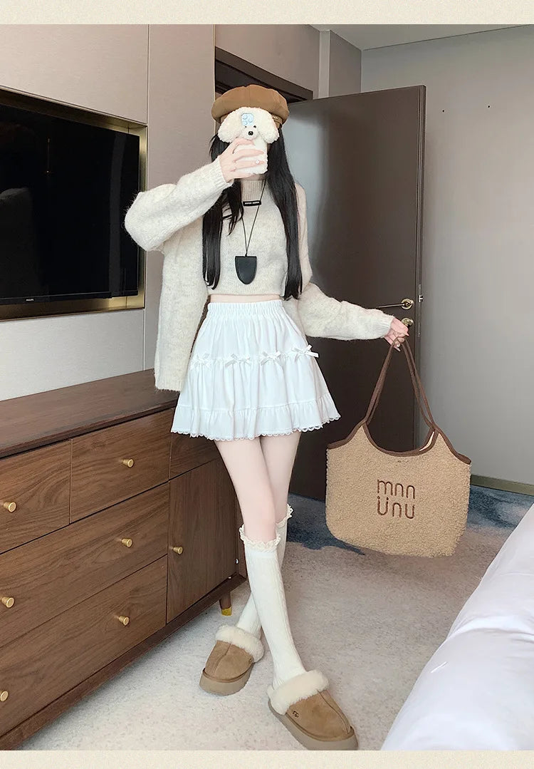 Women's Bow Skirt Spring2025New French Sweet High Waist Cake Lace PuffyAShort Skirt