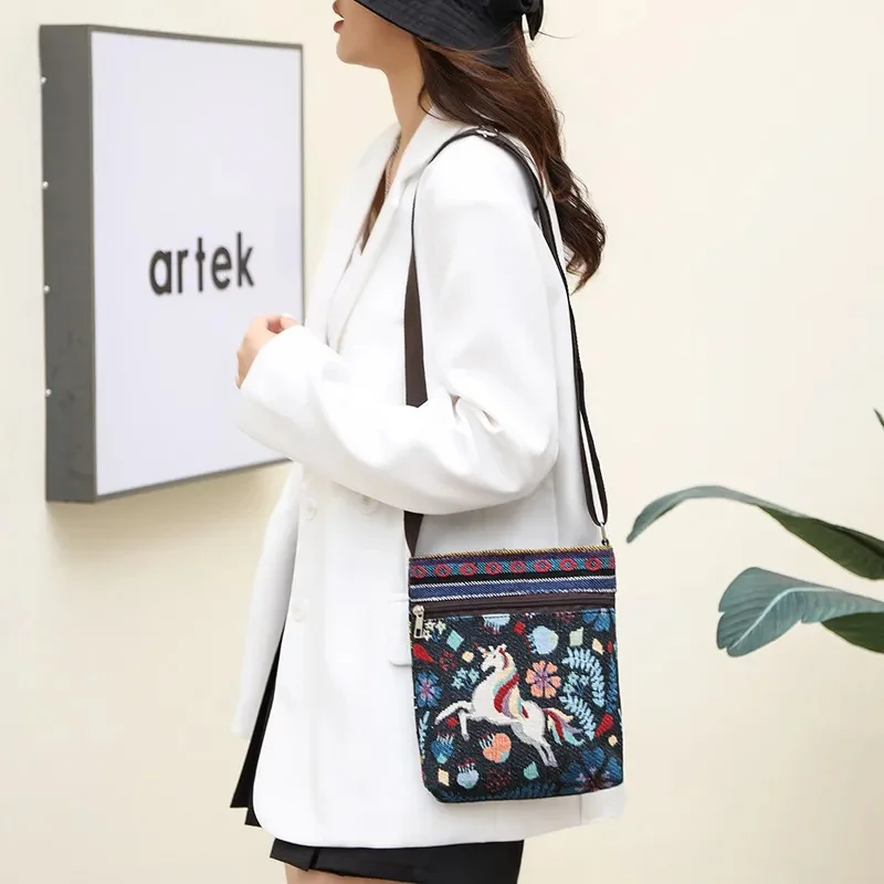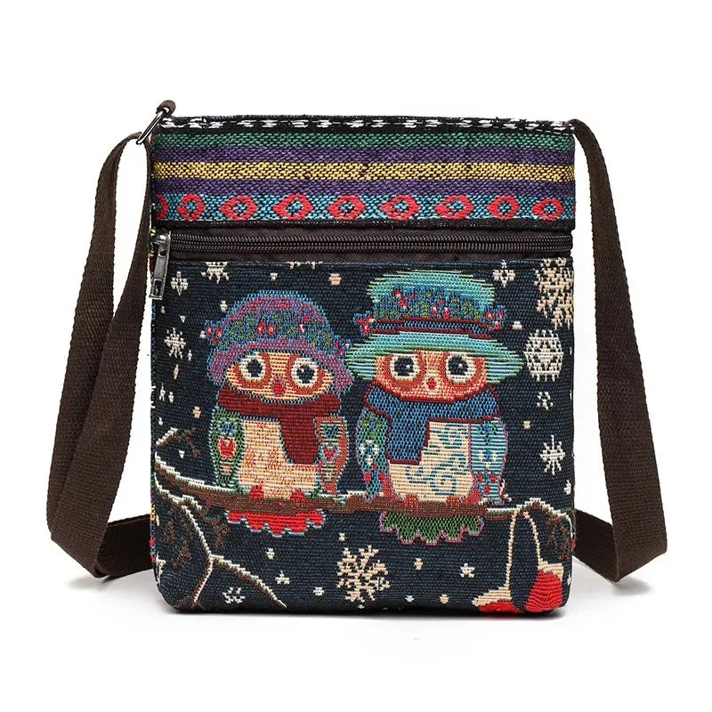 Women's Canvas Handbags Hot Sale Casual Shoulder Bag Owl Embroidered Ethnic Bag Vintage Messenger Bag Ladies Shoulder Bag