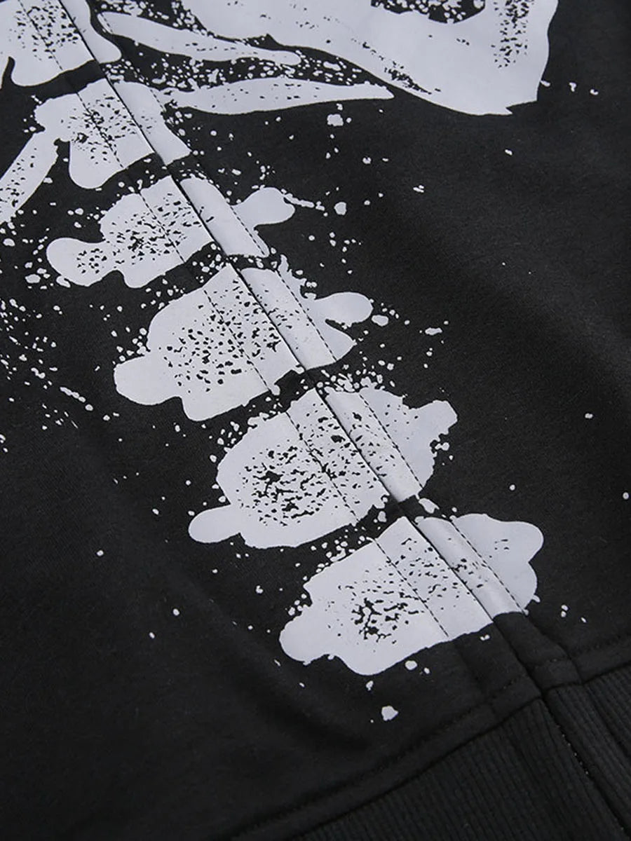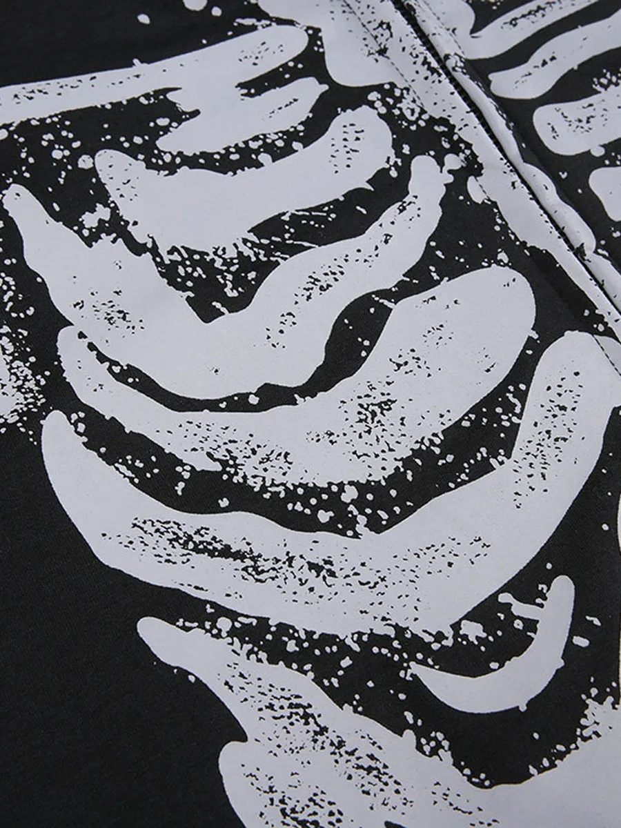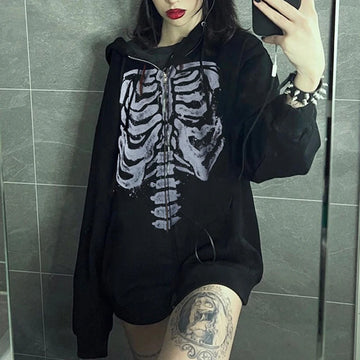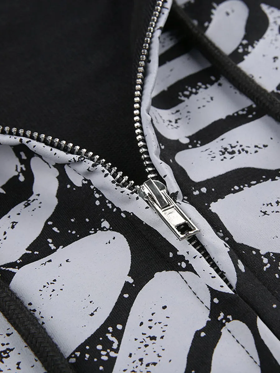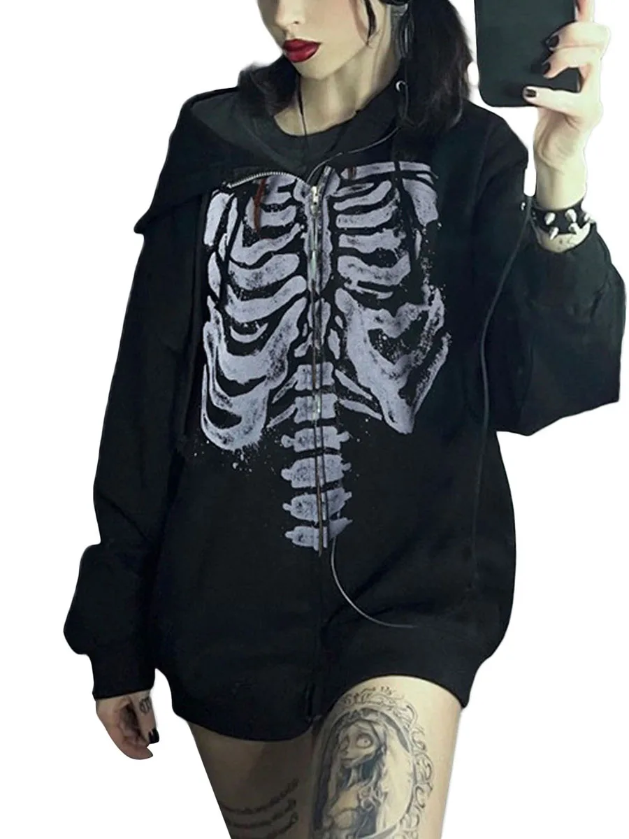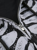 Women's Spring Autumn Casual Hooded Coat Long Sleeve Skull Print Zipper Hoodie