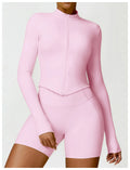 Women's Gym Exercise Shirt Yoga Long Sleeve Sportswear Top Zipper Jacket Gym Push Up Workout Tops Running Cycling Sportswear