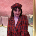 Red plaid beret, a versatile accessory f: Classic red checkered beret crafted from soft cotton.