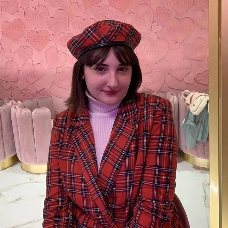 Red checkered beret, a must-have accesso: Fashionable red plaid beret to add flair to your wardrobe.