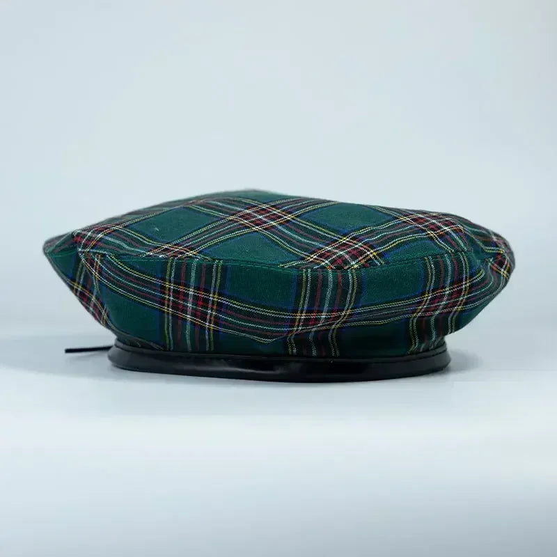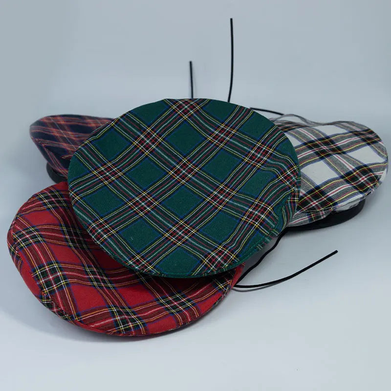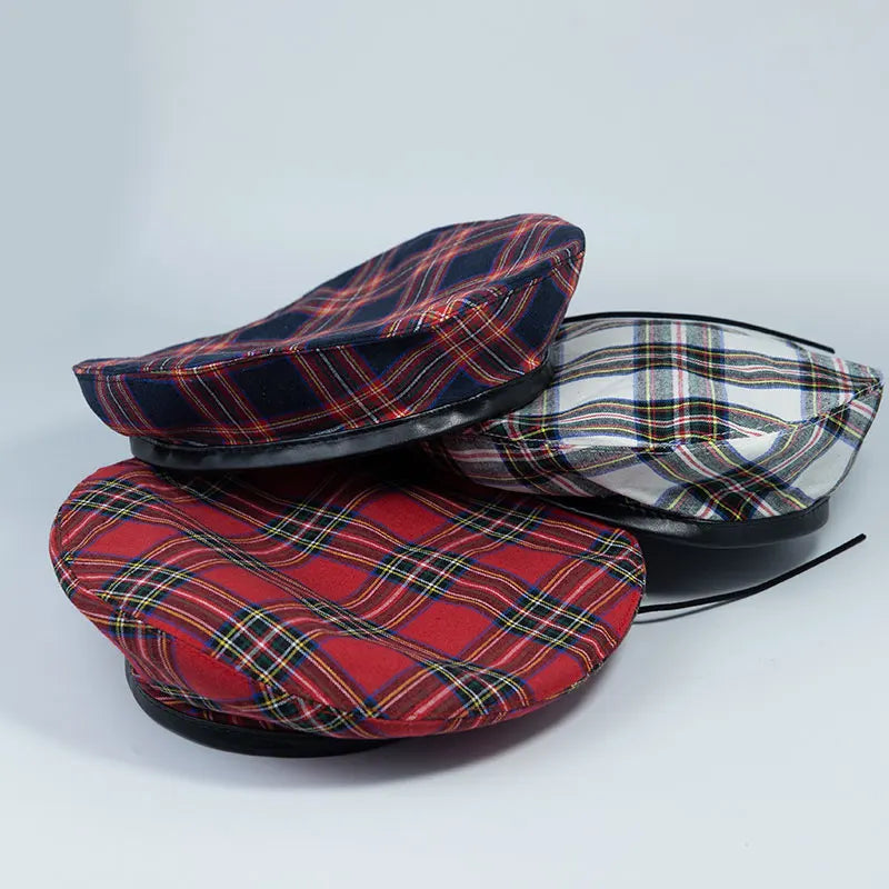 Trendy red plaid beret to elevate your f: Cotton beret with a red plaid pattern for a timeless look.