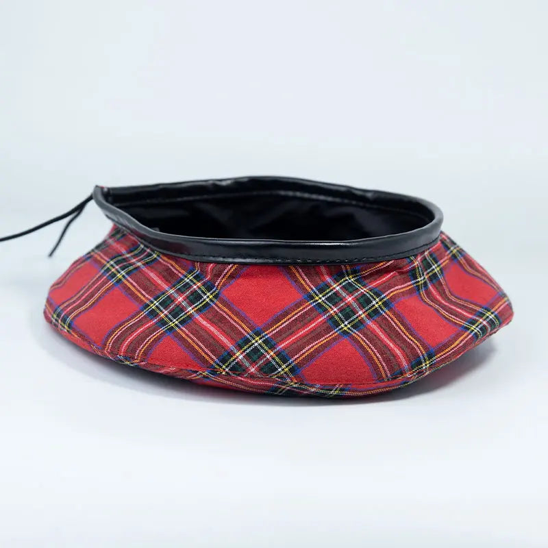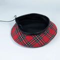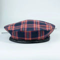 Fashionable cotton beret in a bold red p: Stylish red beret with a classic plaid design.