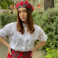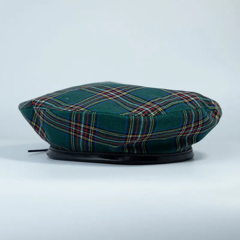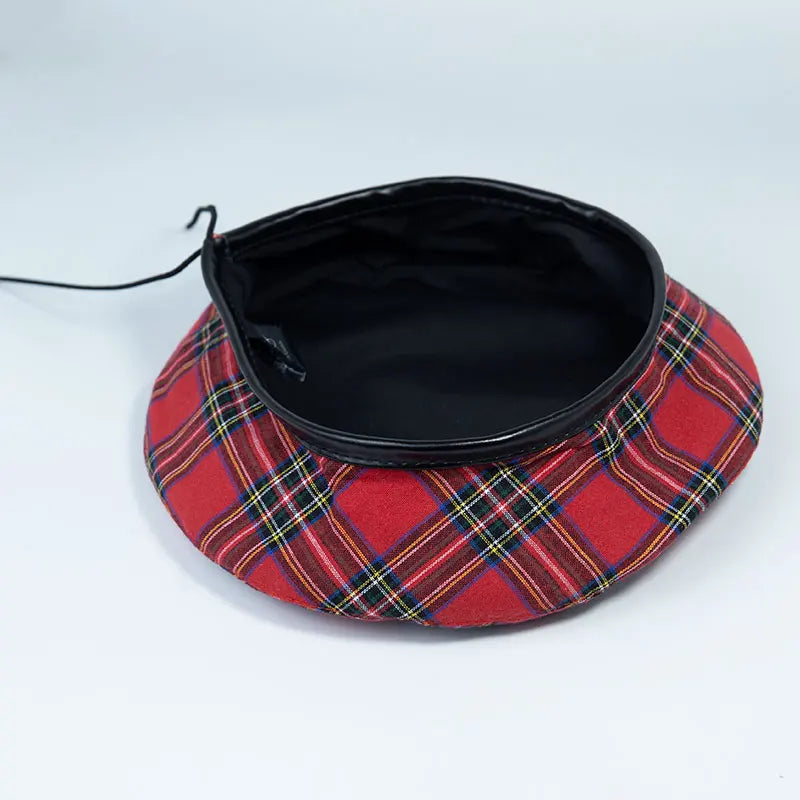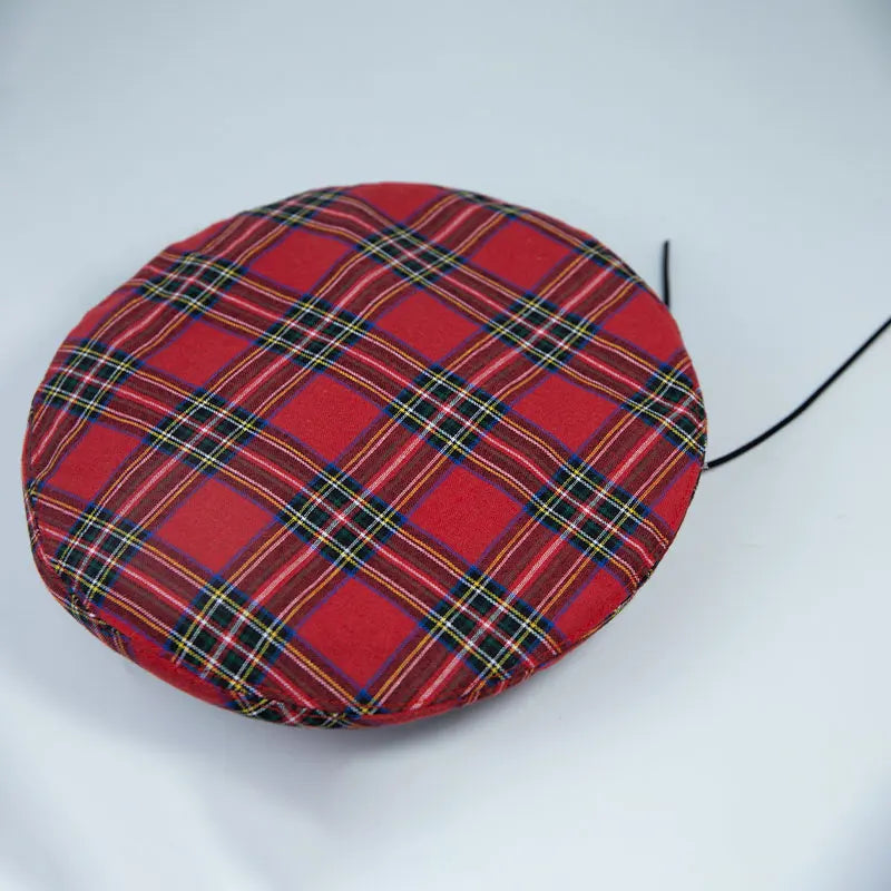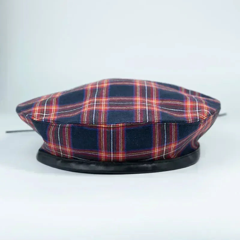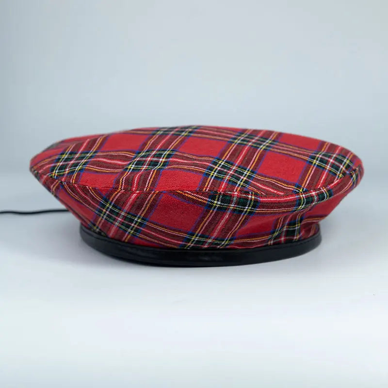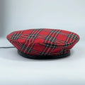 Red plaid cotton beret for a stylish loo: Classic red checkered beret for a chic ensemble.