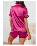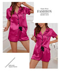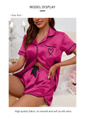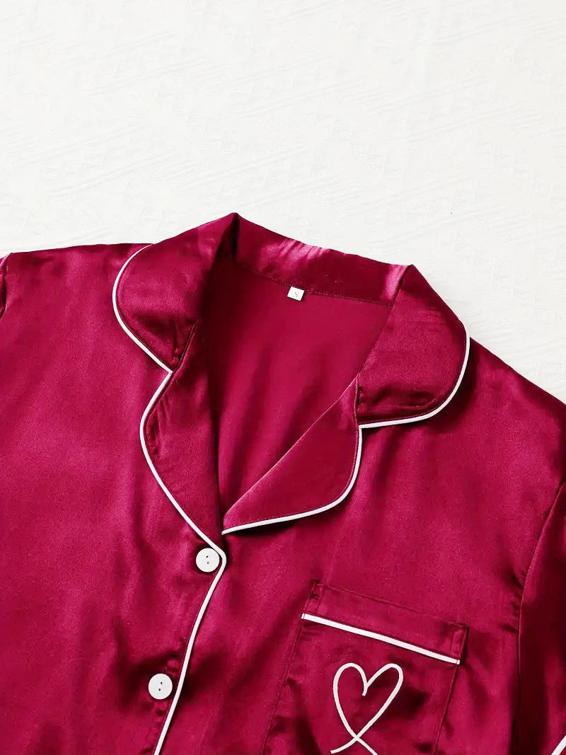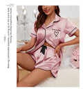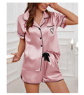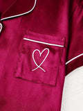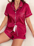 Women's Pajamas Lounge Set Heart Embroidered Pocket Patched Sleepwear Button Down Short Sleeve Top & Shorts Pyjama Home Clothing