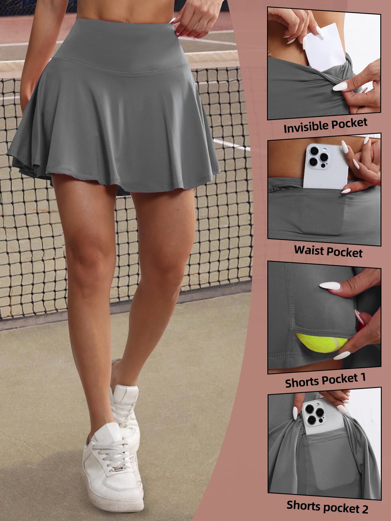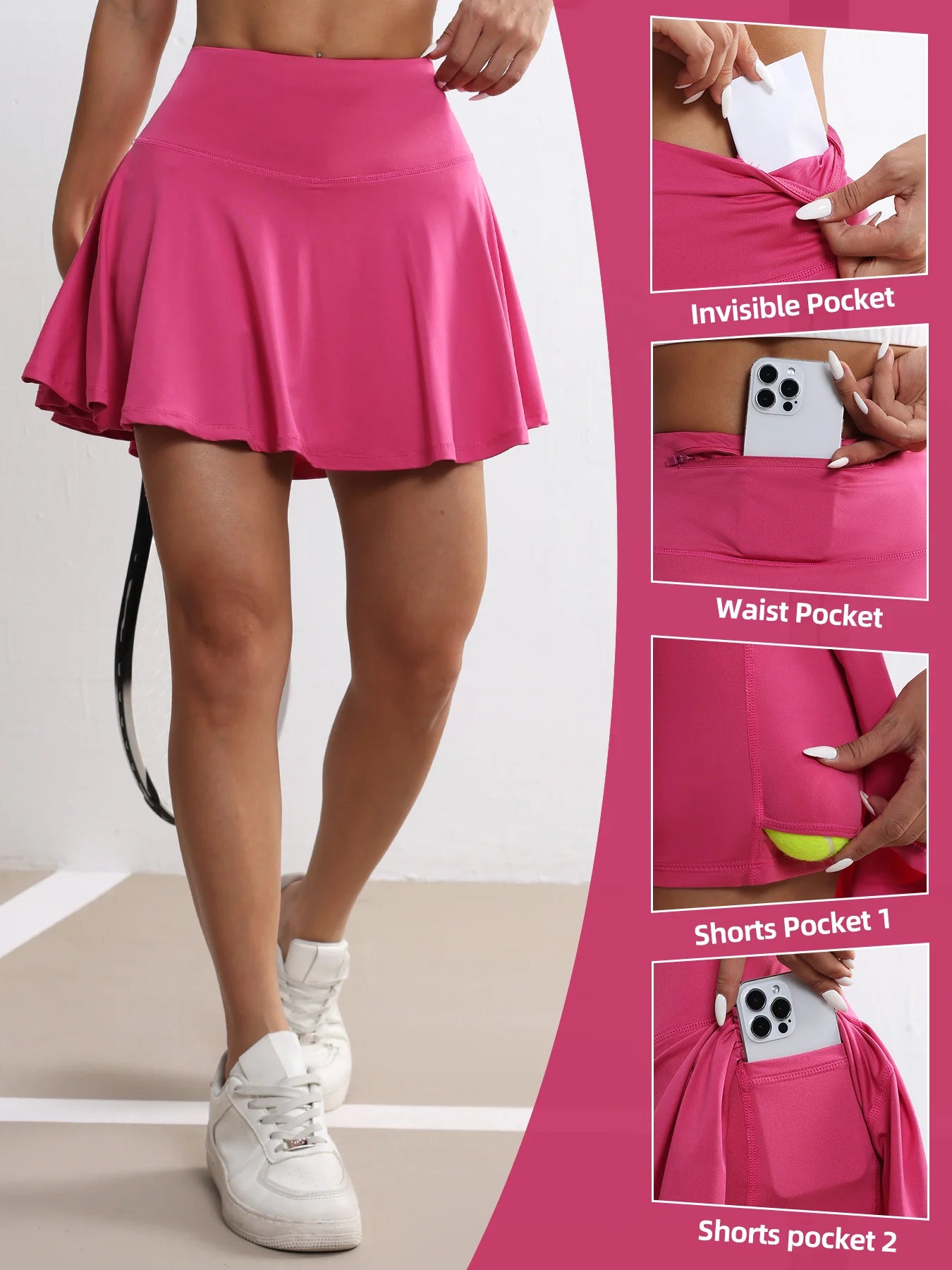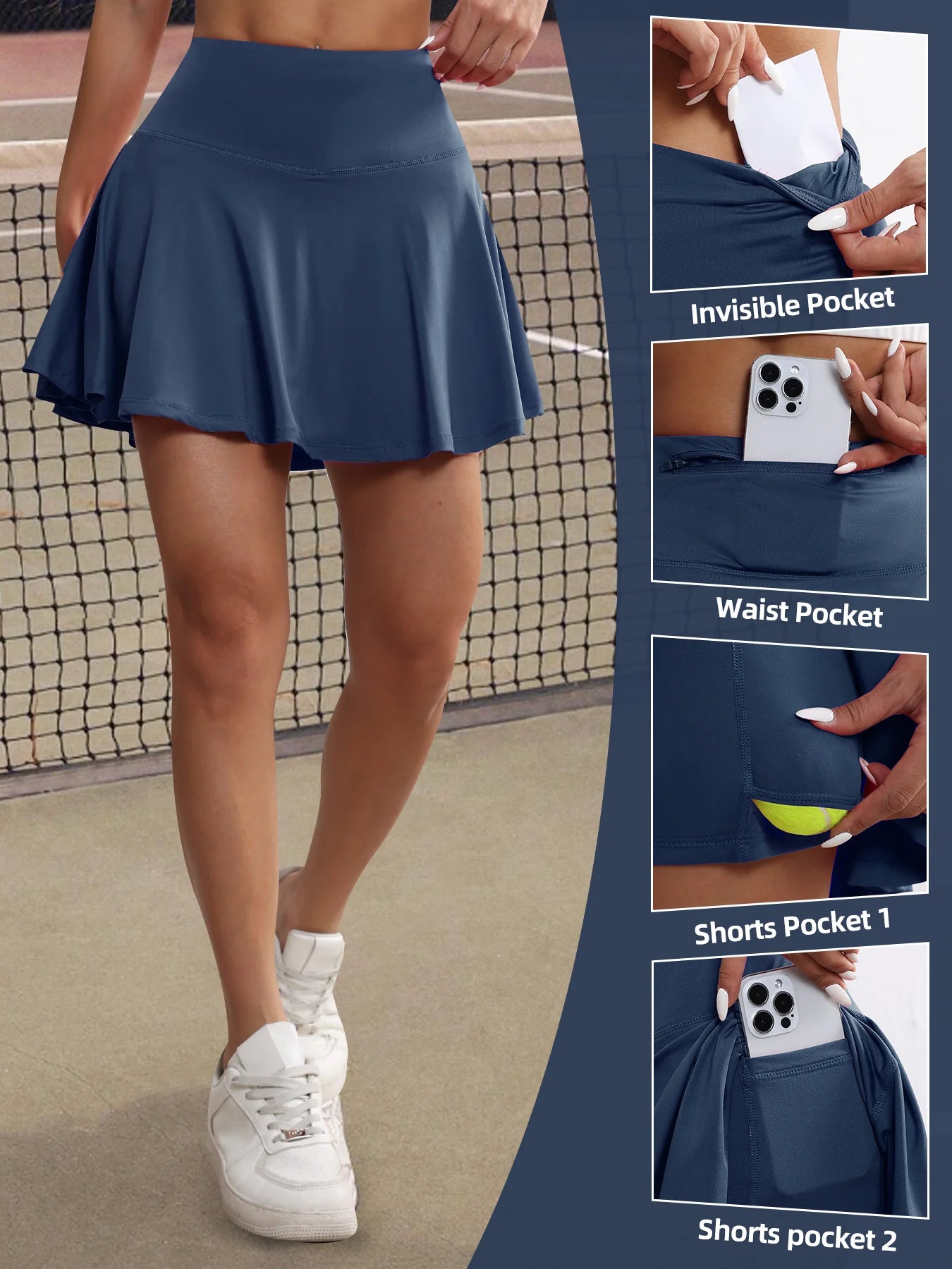 Women's Pockets Tennis Skirts High Waisted Pleated Skirt Athletic Golf Running Fitness Sports Skirt Clothing