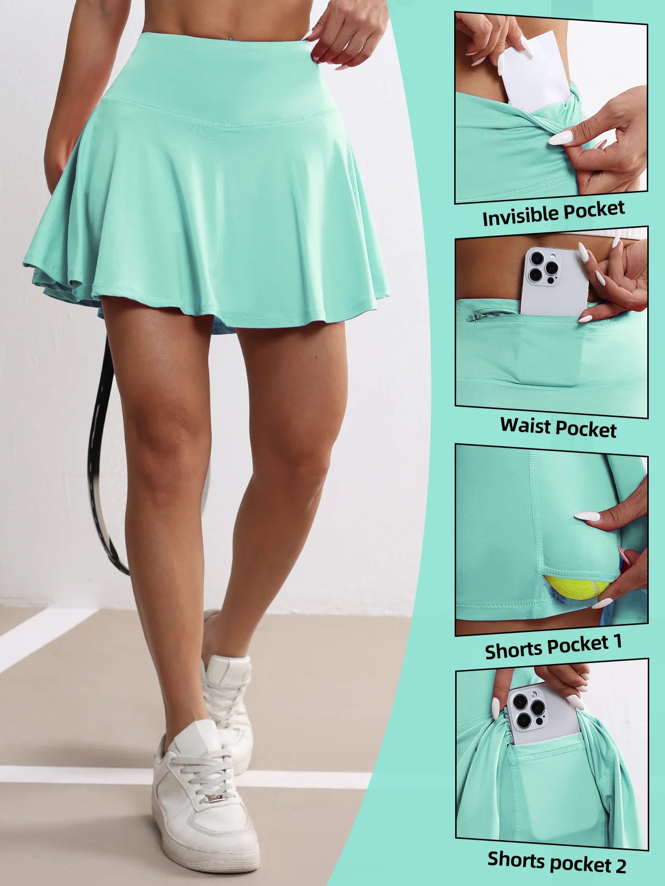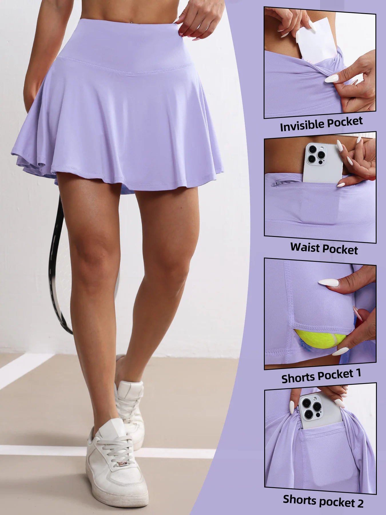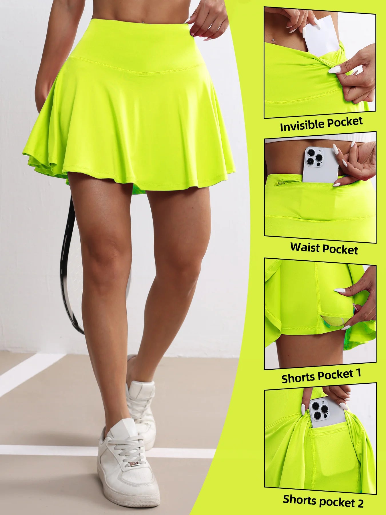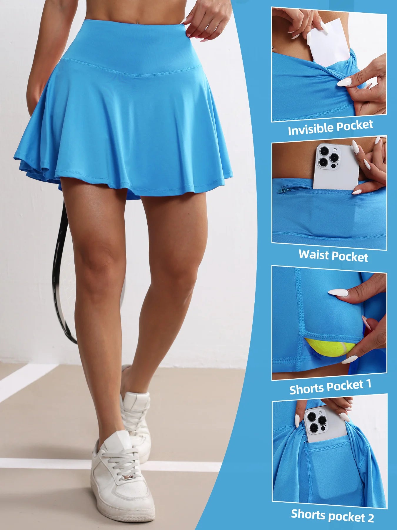 Women's Pockets Tennis Skirts High Waisted Pleated Skirt Athletic Golf Running Fitness Sports Skirt Clothing