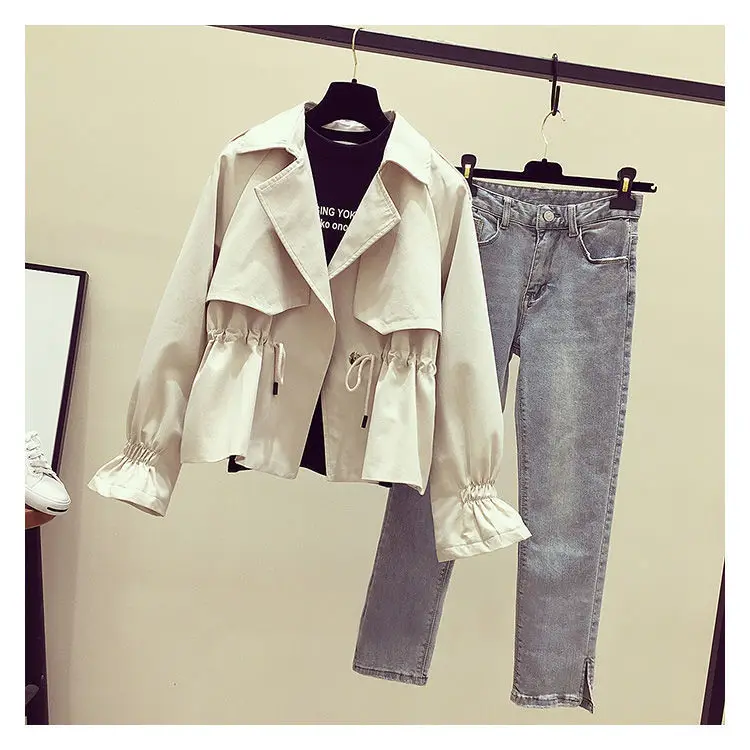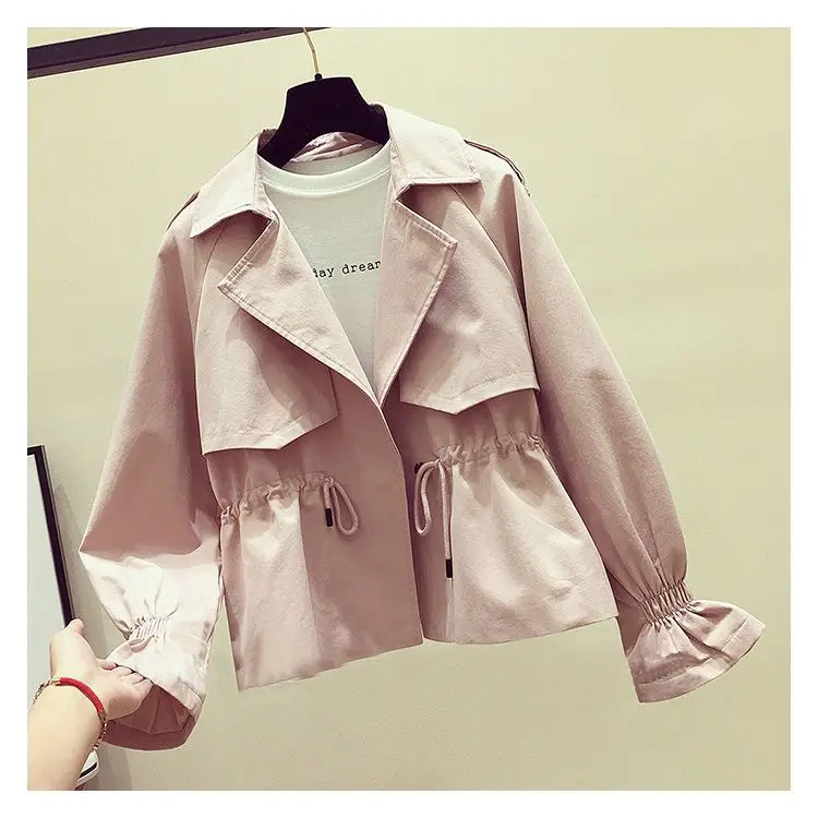 Women's Short Jacket 2025 Spring Autumn New Korean Fashion Loose Waist Slim Windbreaker Coat Solid Female Outwear Tops