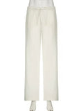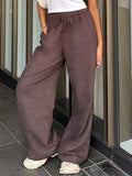 Women's simple soild-color drawstring casual pants,They are loose,trendy,straight-tube style,lazy and comfortable.