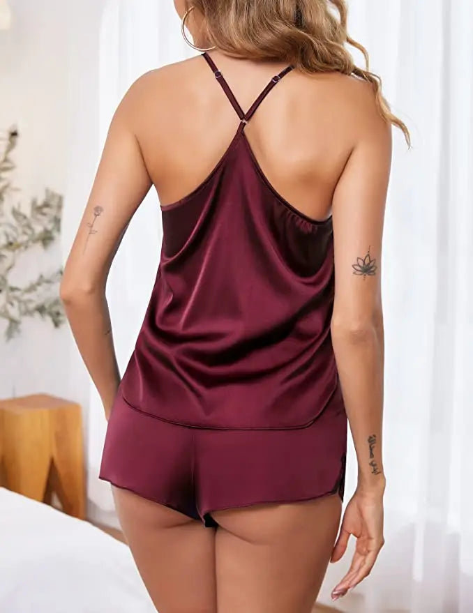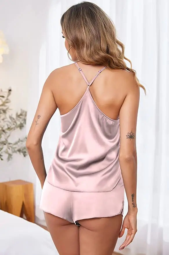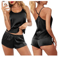 Women's Sleepwear Sexy Lace Satin Pajama Sets Nightwear Sleeveless Tops+Shorts 2 Pcs Sets Pyjama Sets For Women Pijama