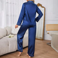 Women's Sleepwear Simple Satin Pajama Set Long Sleeve Buttons Lapel Top With Elastic Pants Loungewear Nightwear 2 Piece Nighty