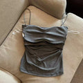 Women's Sleeveless Top Tank Underwear Fitted Camisole Sexy Short Top With Thin Straps Plain White Tank Top Korean Style