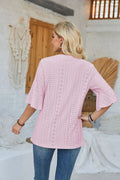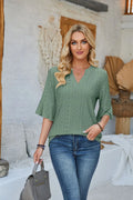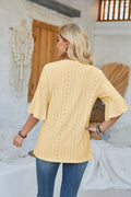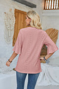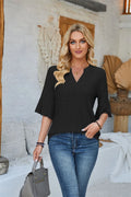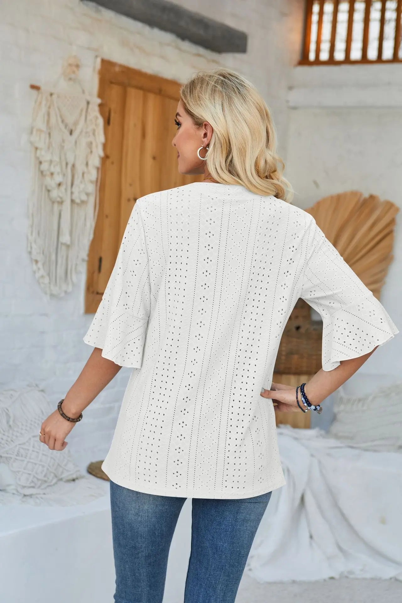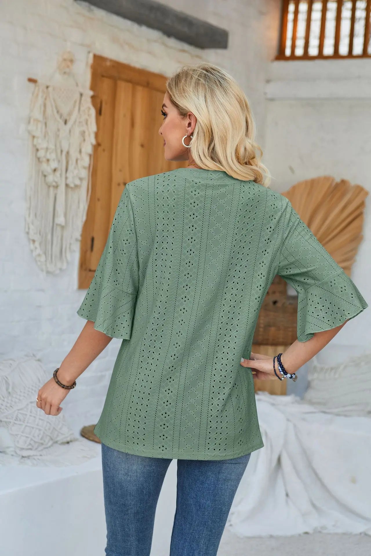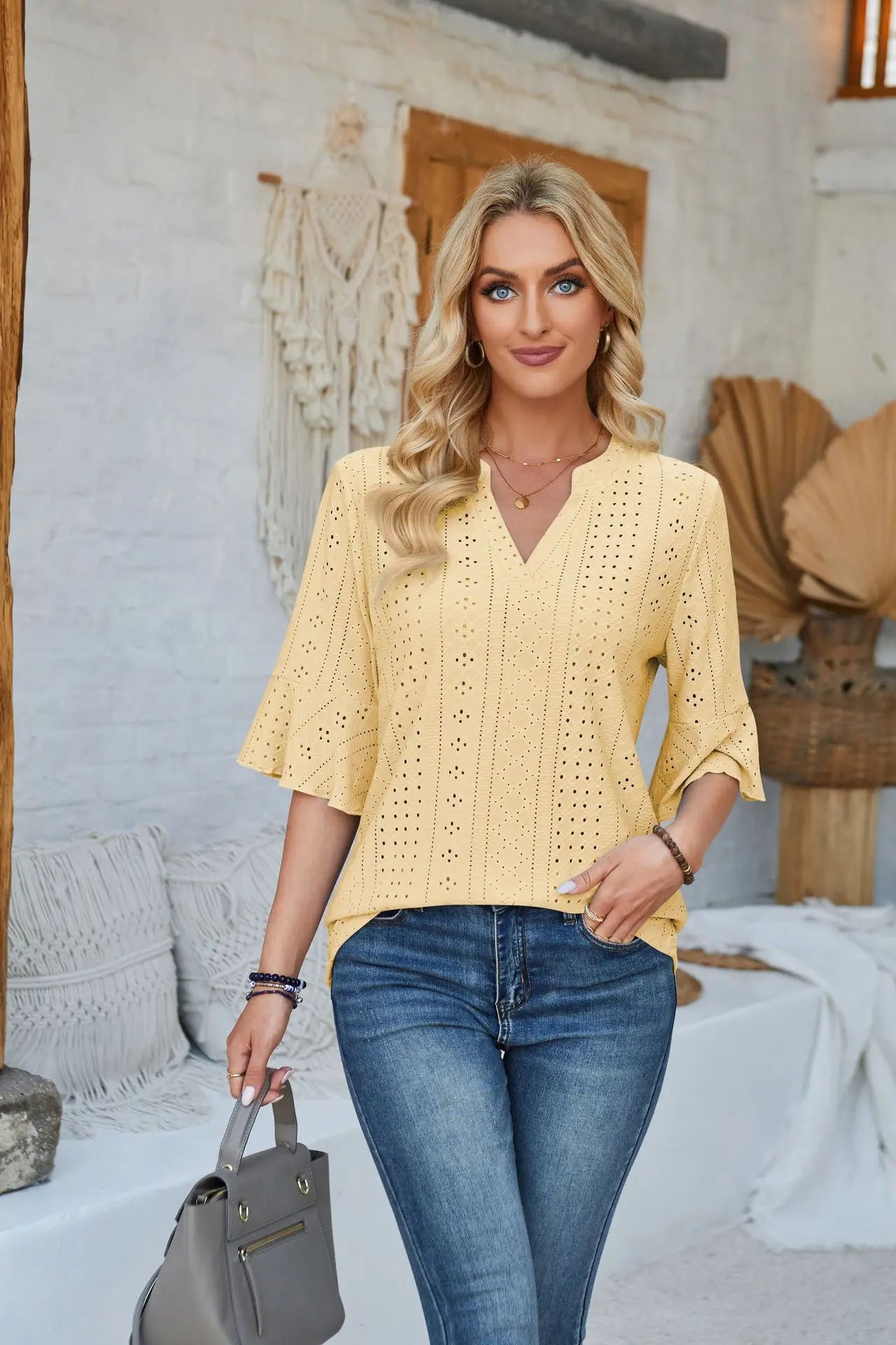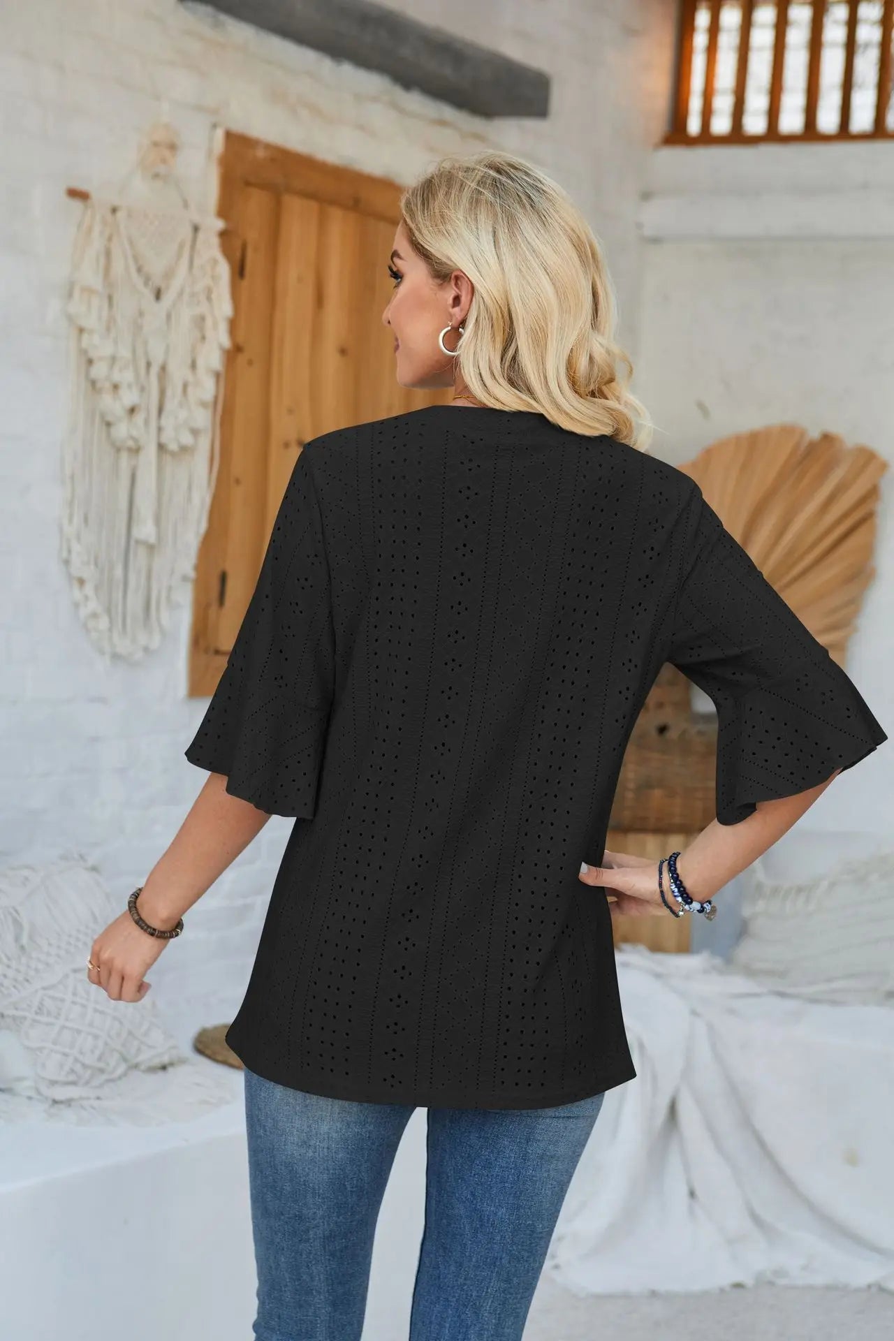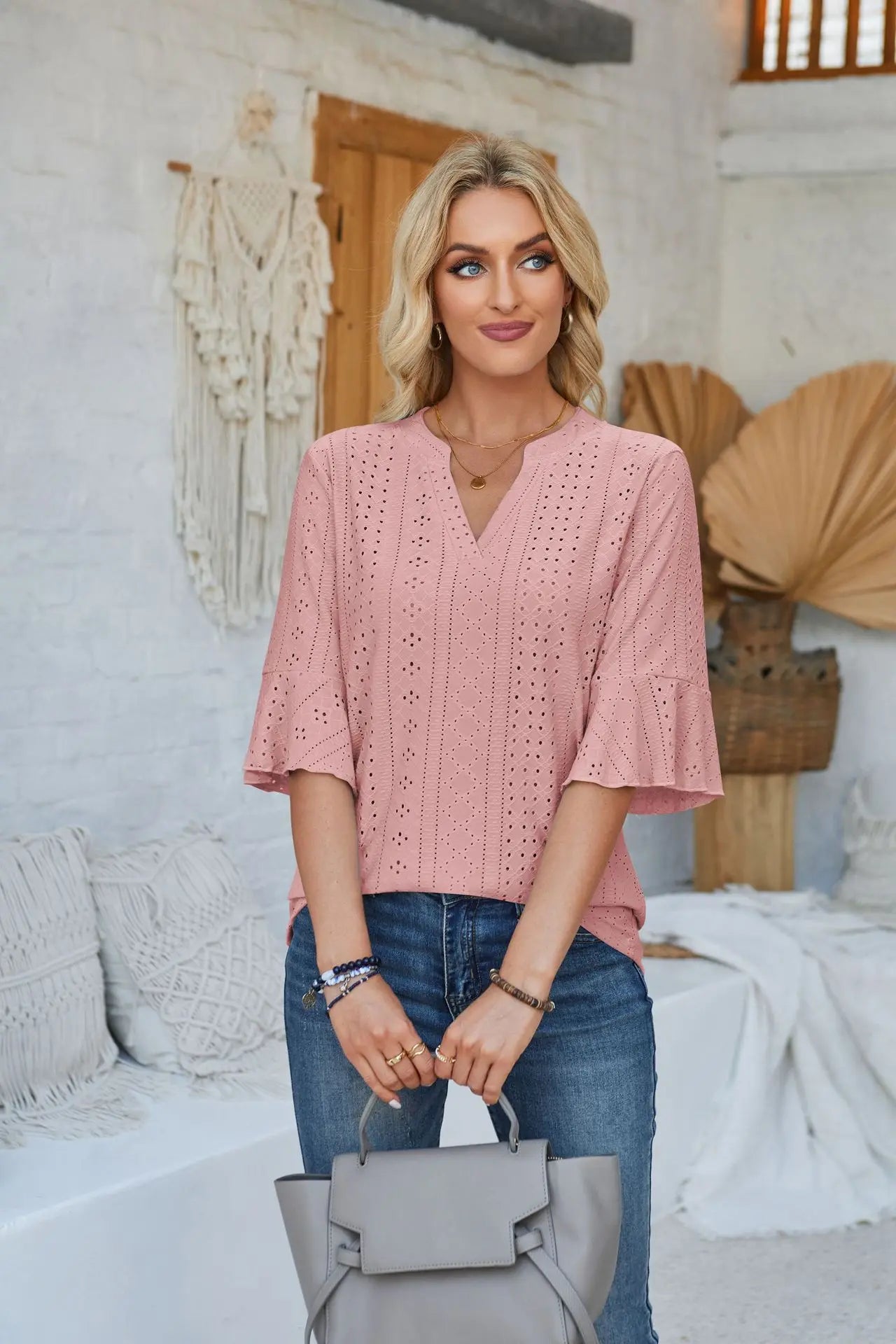 Women's Summer Blouse New Solid Color Half Sleeve Loose Casual T-shirt Hollow Out V-neck Tops Office Ladies Tee Women's Clothing