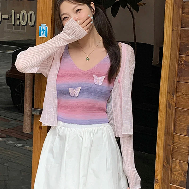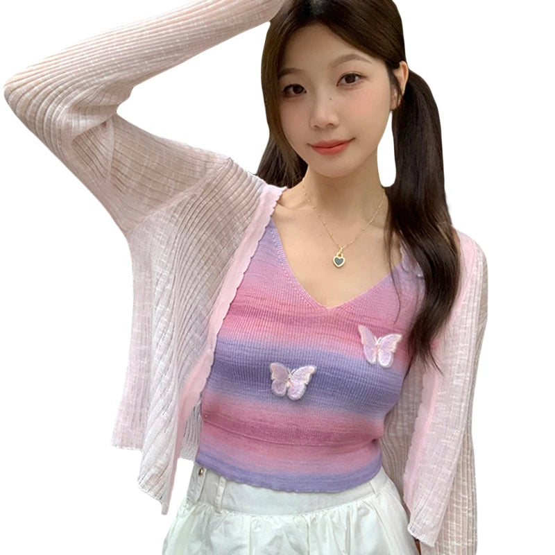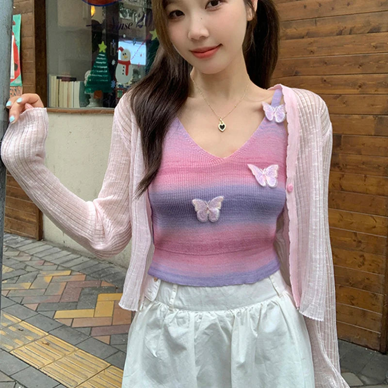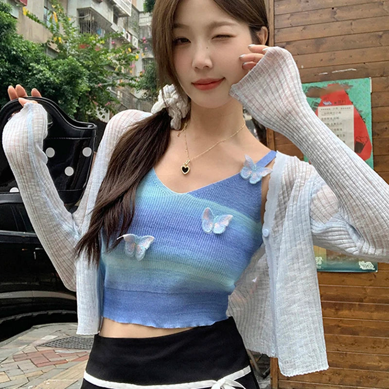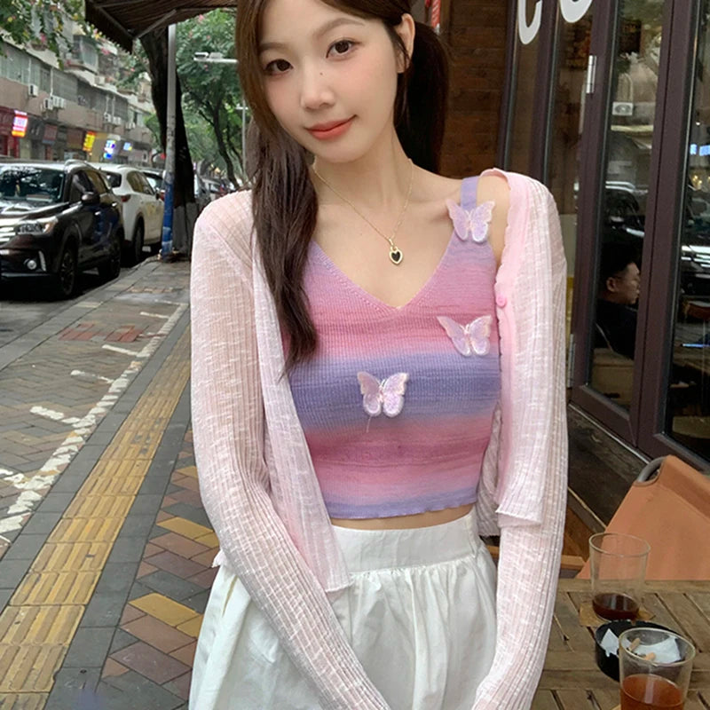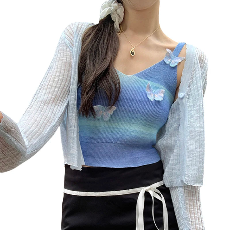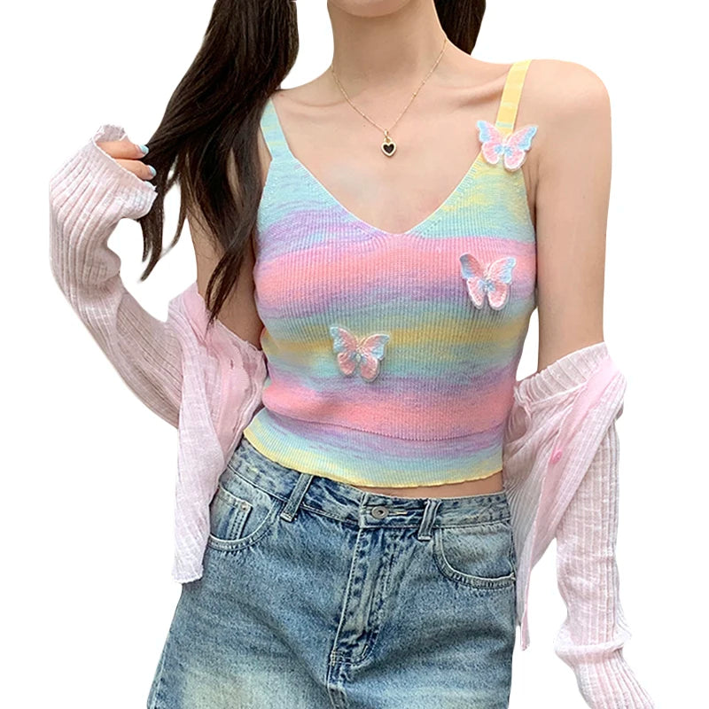 Women's Summer Slim Tank Tops Sleeveless V Neck 3D Butterfly Knitted Vest