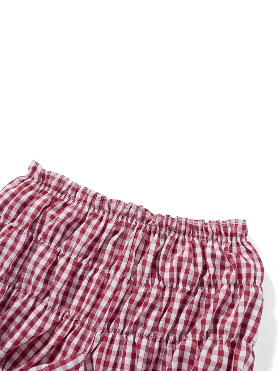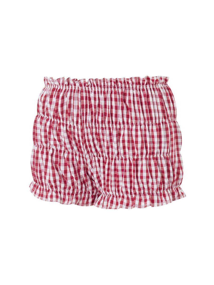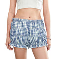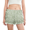 Women Summer Ruffled Shorts Casual Plaid Print Elastic Waist Short Pants for Beach Nightclub Streetwear