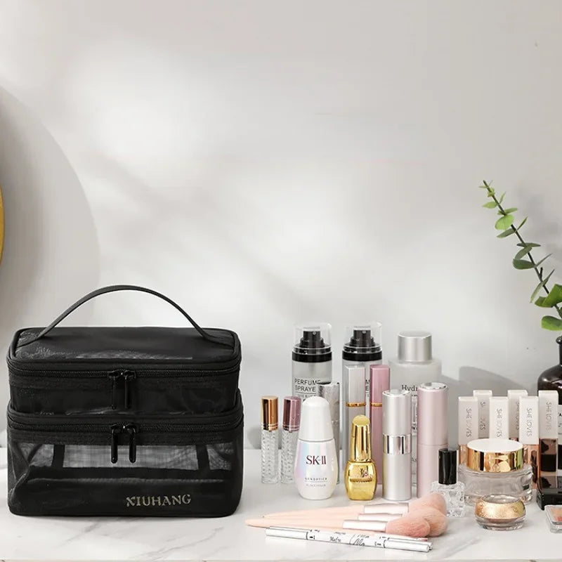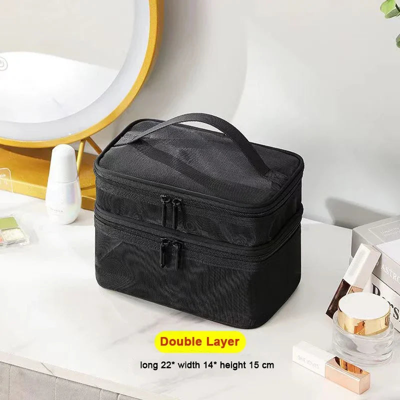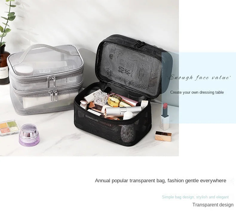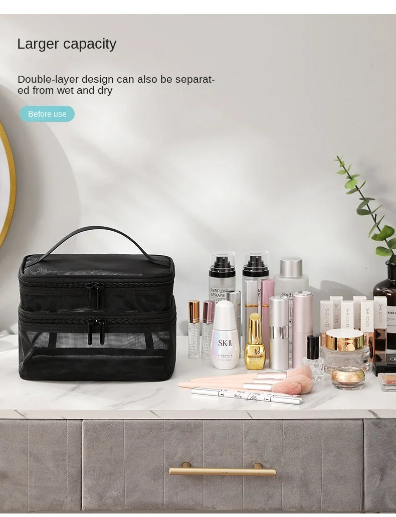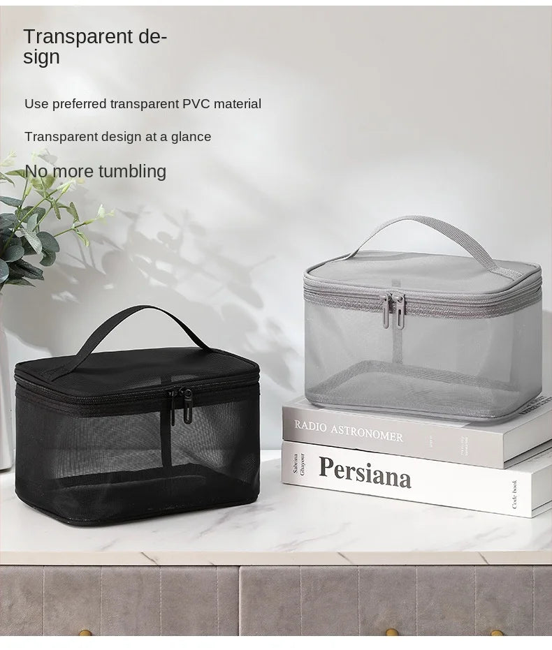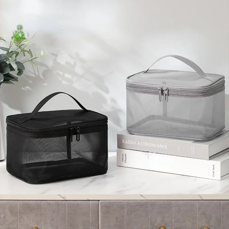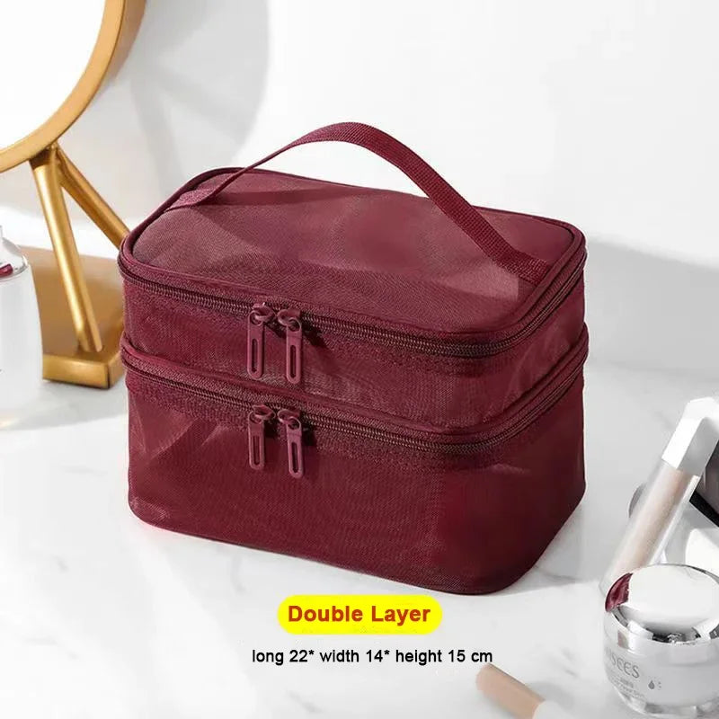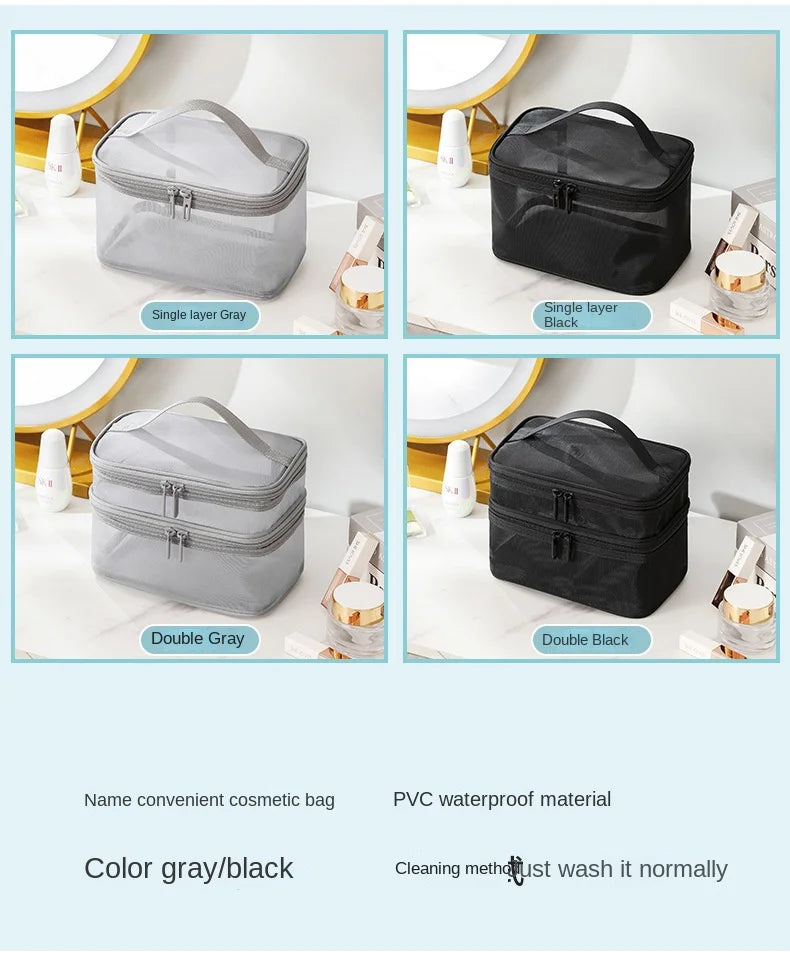 【Visualized Mesh】 The see-through design enables you to see what is stored in the durable mesh cosmetic case and easily find items inside. The mesh hides the stain better and the case can be folded up without wrinkle.