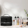 【Strong Handle】 The top compartment of double layer cosmetic bag has a firm handle so you can carry the bag when you go to office, gym,camping, or keep it in your car. It is portable and can be taken away whatever you go.