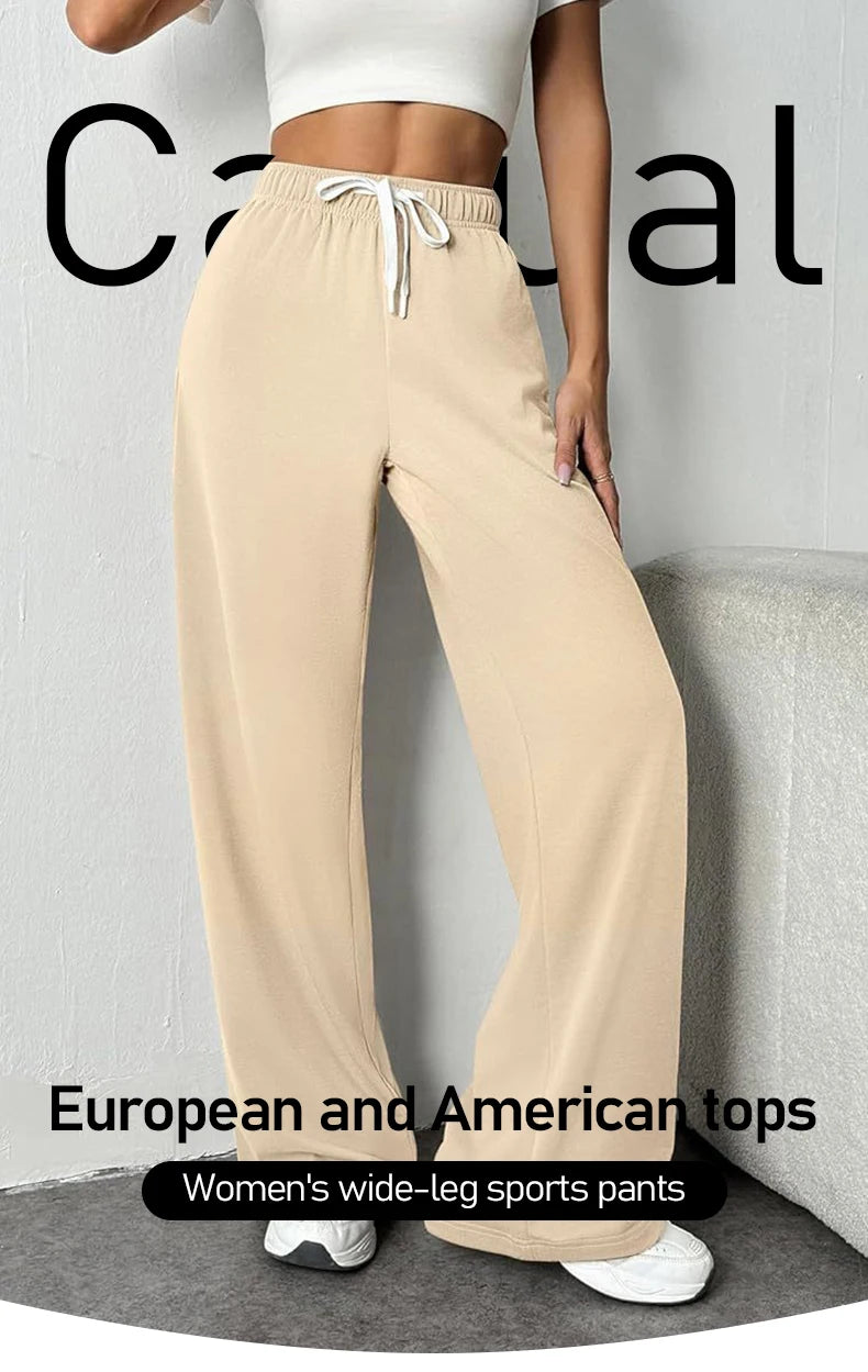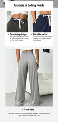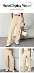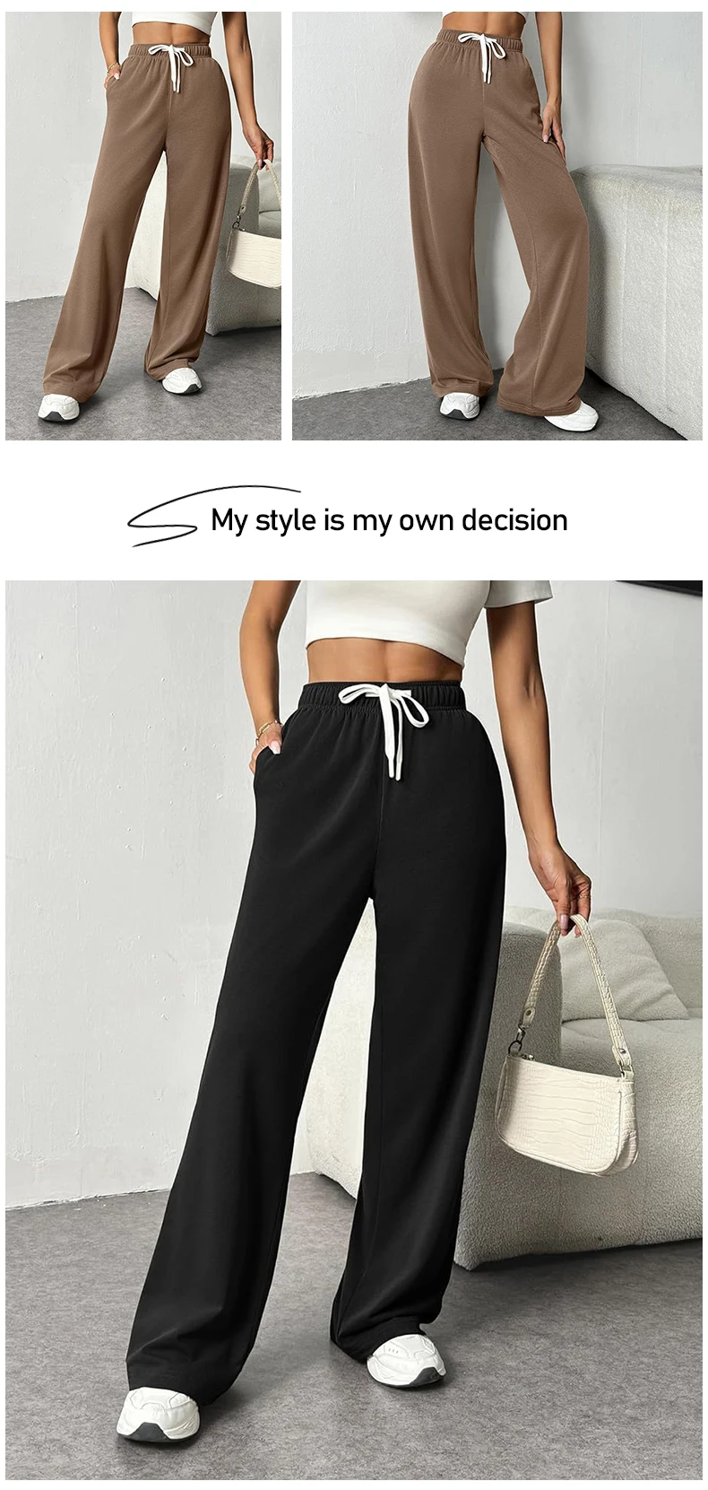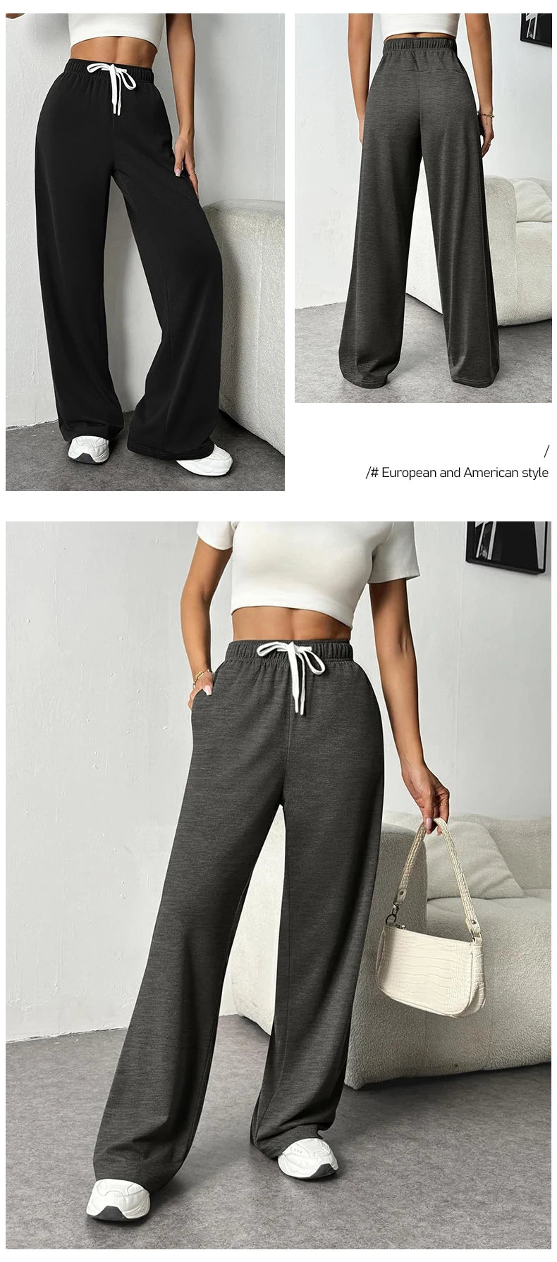 Women'S Wide-Leg Sports Pants High-Waisted Loose Casual Drawstring Fitness Pants With Pockets