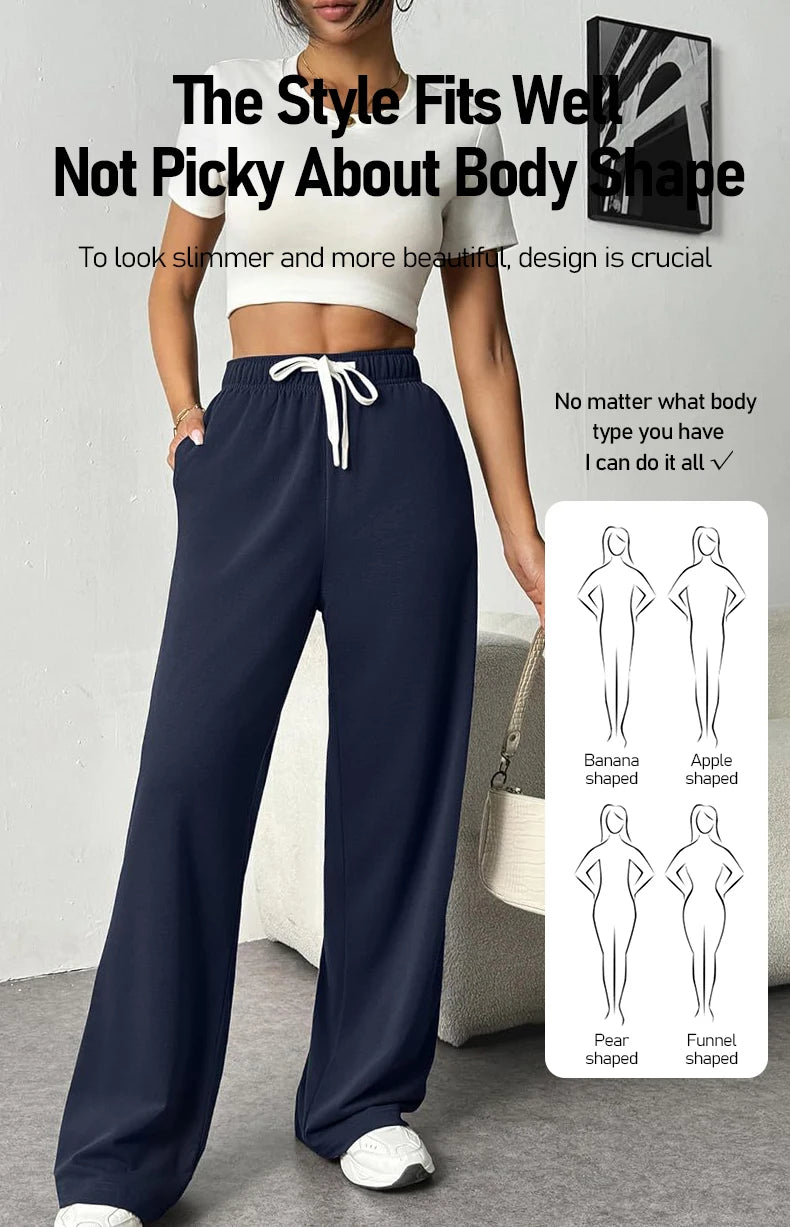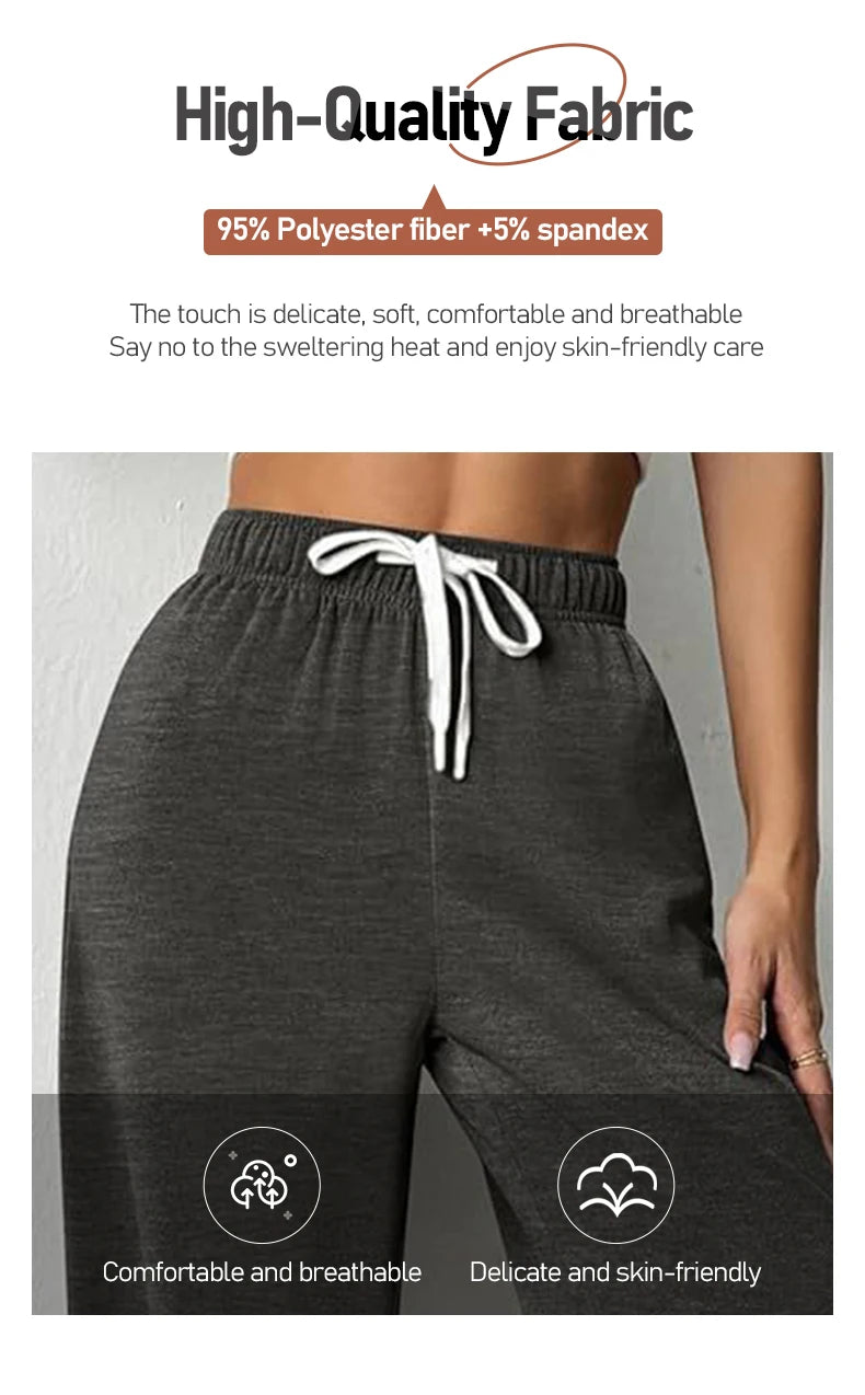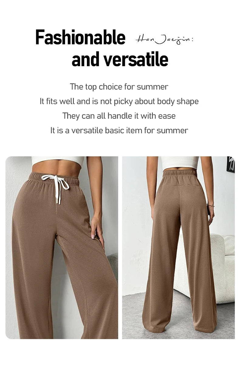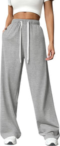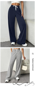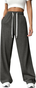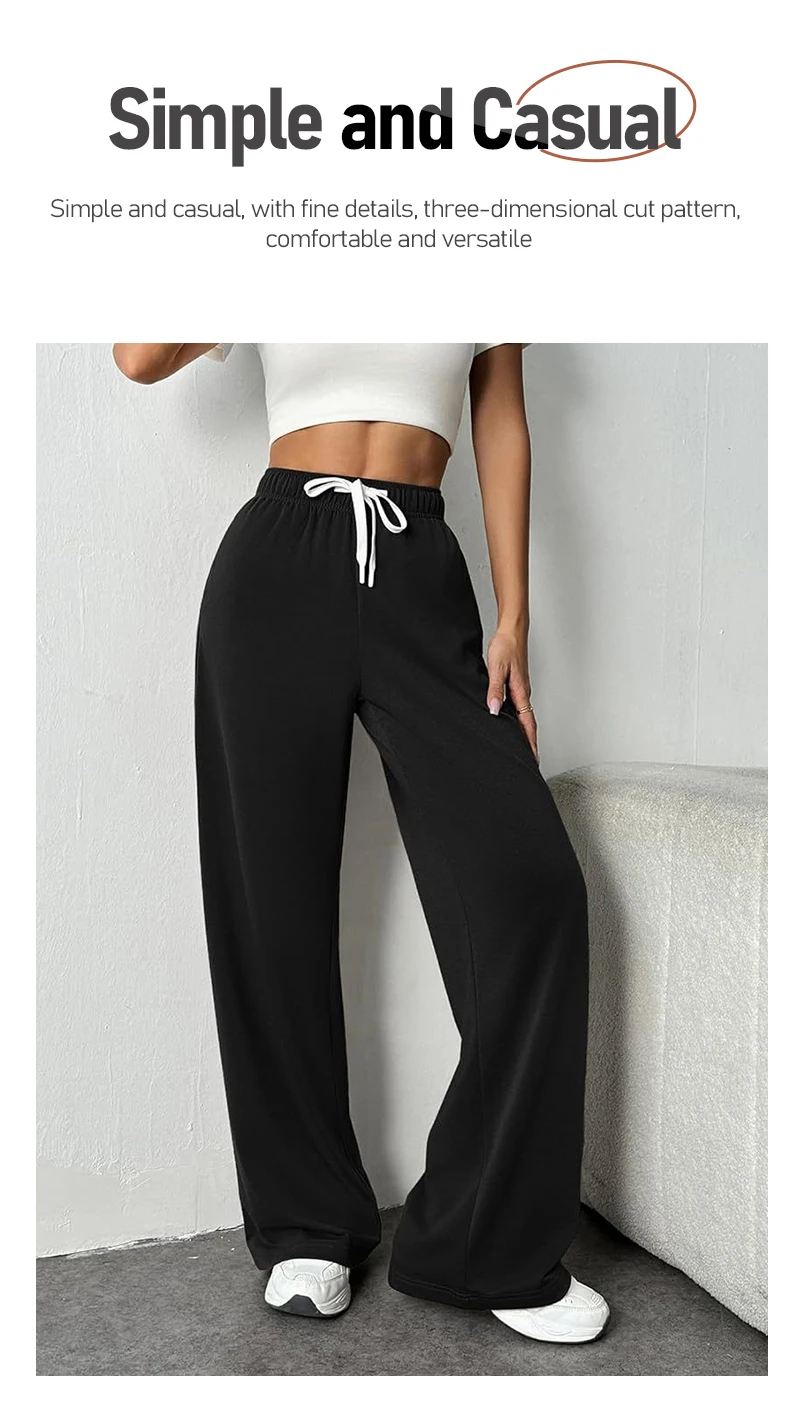 Women'S Wide-Leg Sports Pants High-Waisted Loose Casual Drawstring Fitness Pants With Pockets