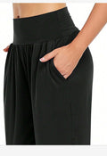 [Fitness & Life]: HIGH WAISTED PANTS -- The elastic waistband design of women's high waisted yoga pants fits the curve of the waist and does not cause additional pressure on the waist, the waistband stay in place. Loose wide leg sports pants can modify the leg shape, elongate the leg curve, and are suitable for pairing with various clothes, without any constraints during exercise.