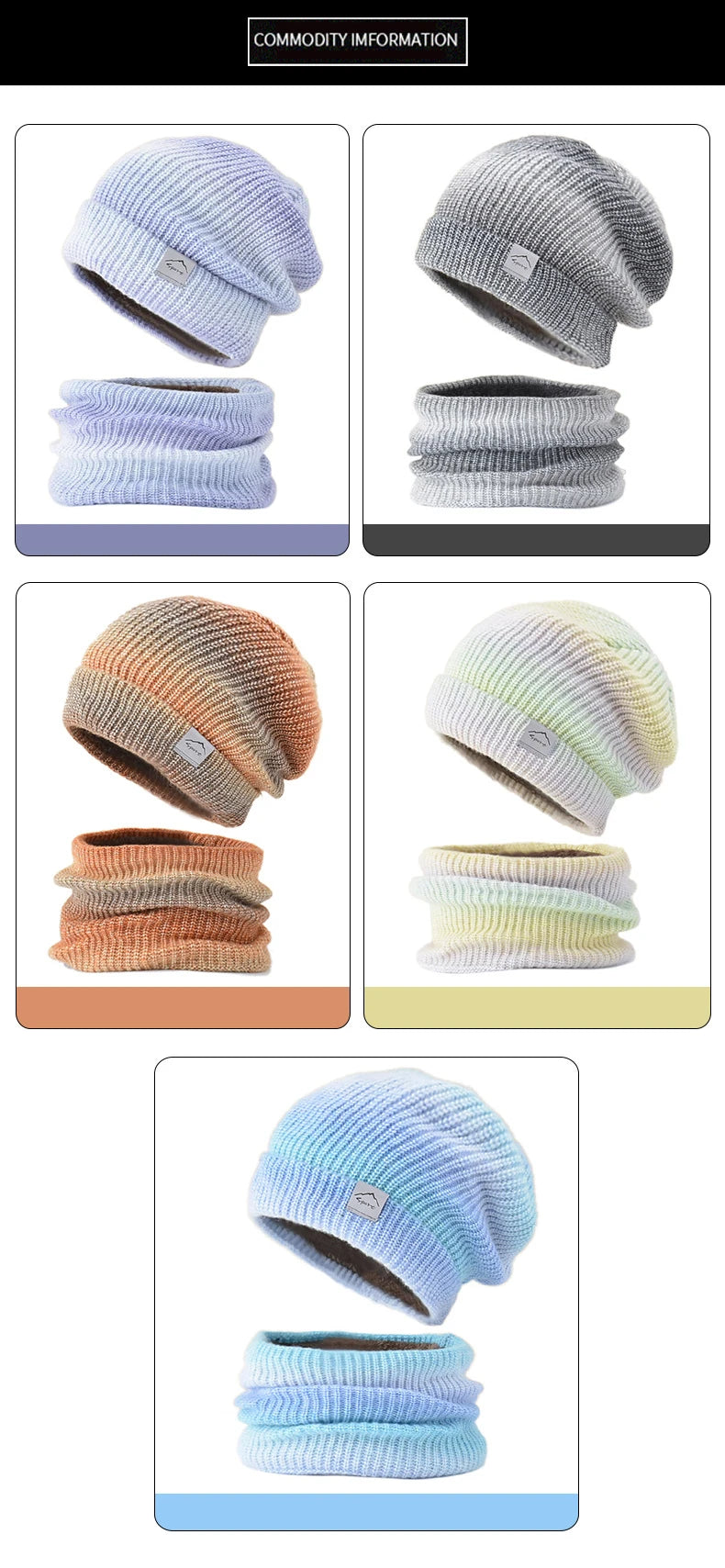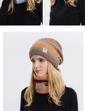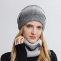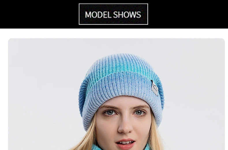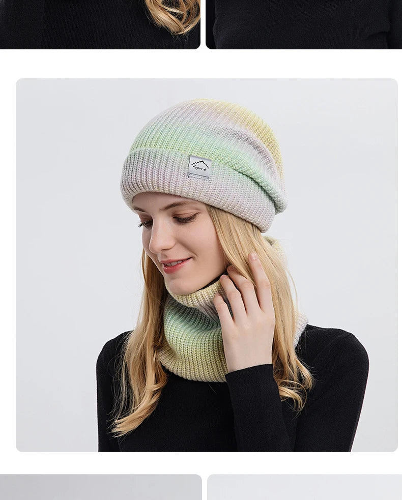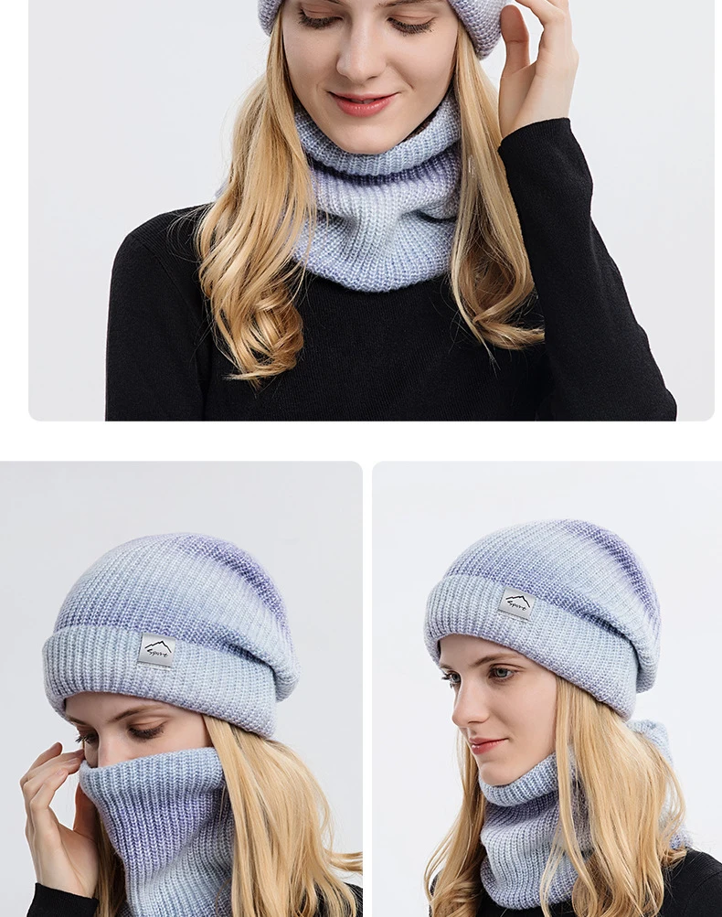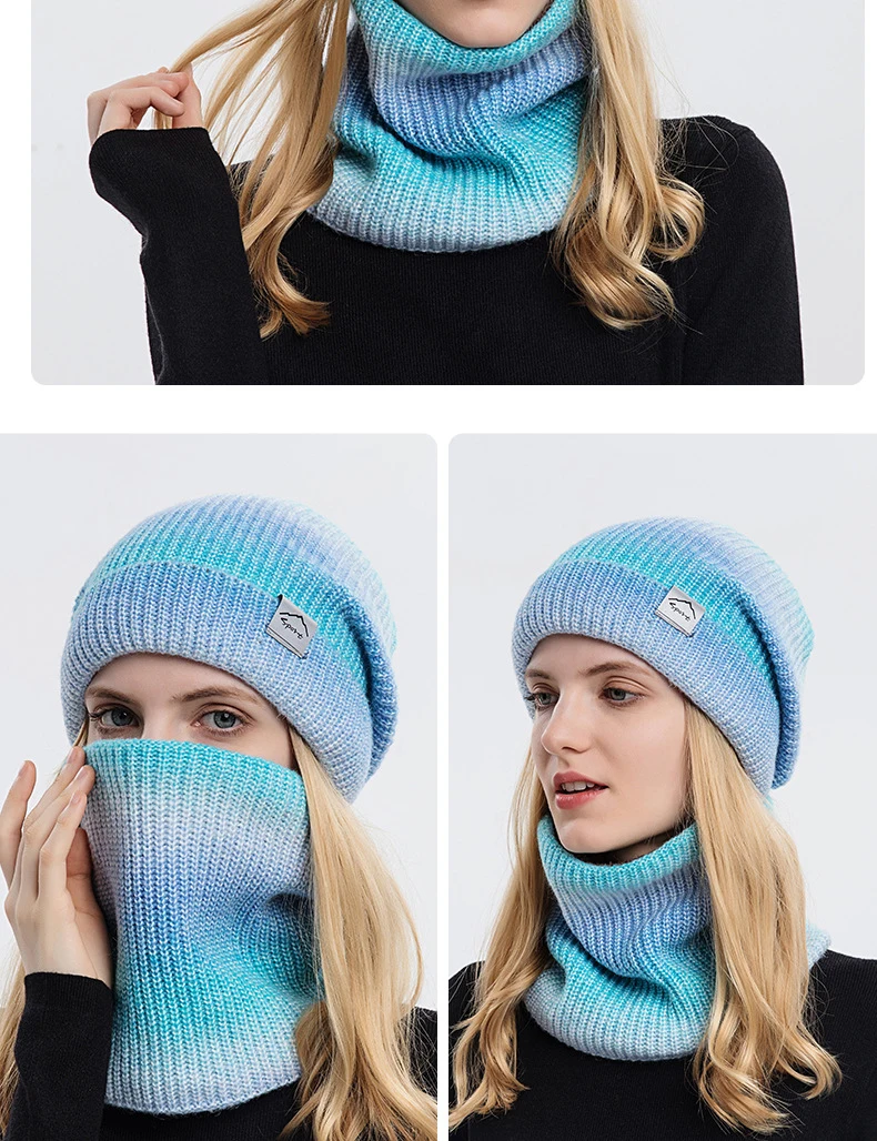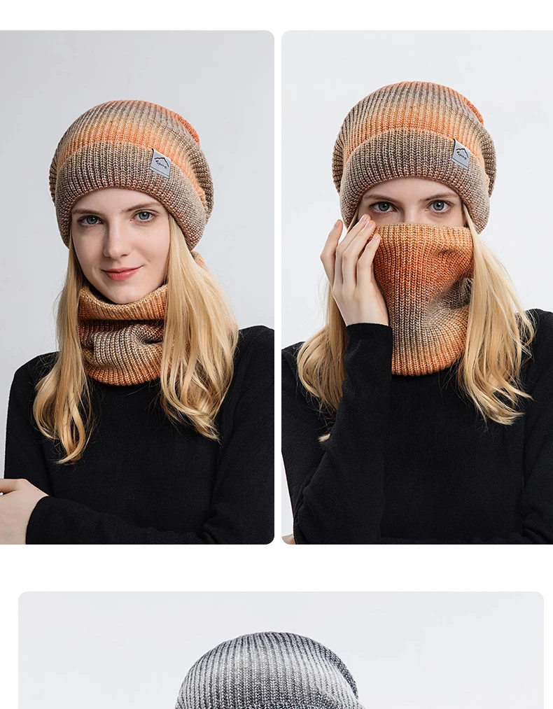 Women's Winter Keep Warm Beanie Scarf Set 2 Pieces Lady Fleece Lining Woolen Yarn Hat Knit Neck Gaiter Gradient Color Wholesale