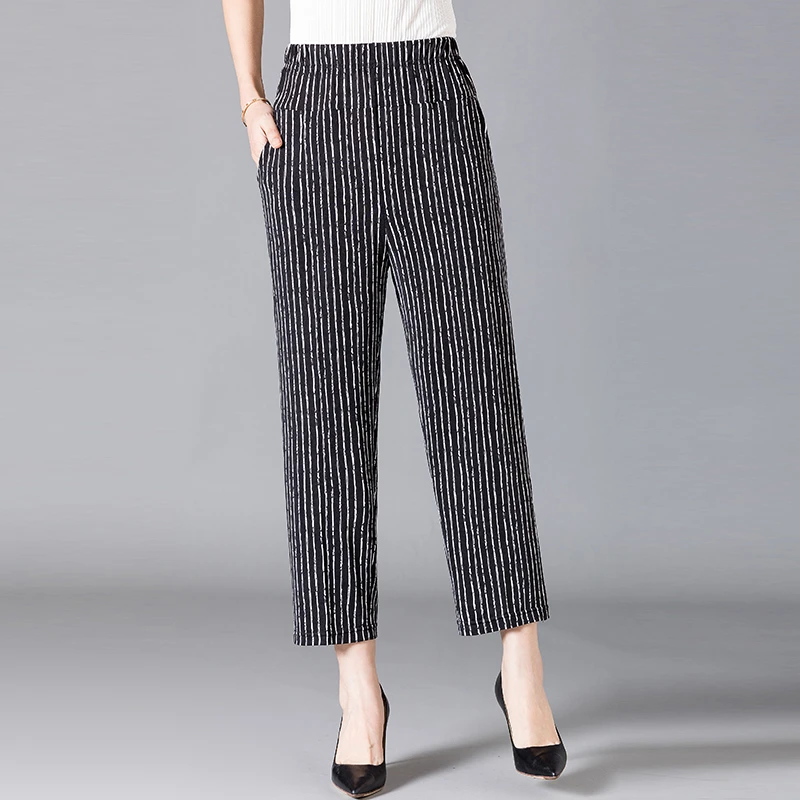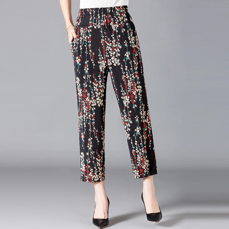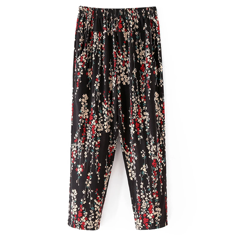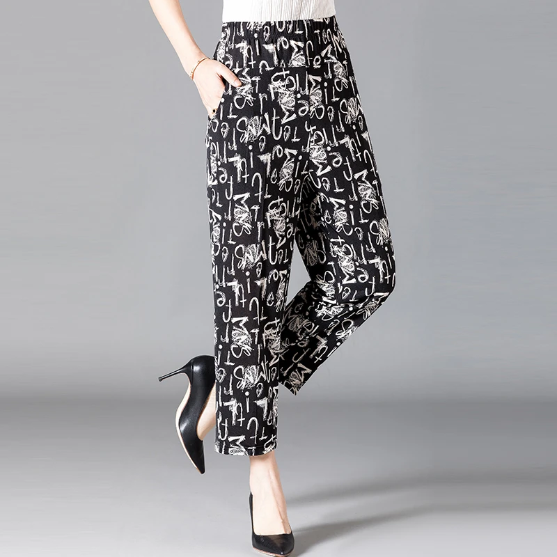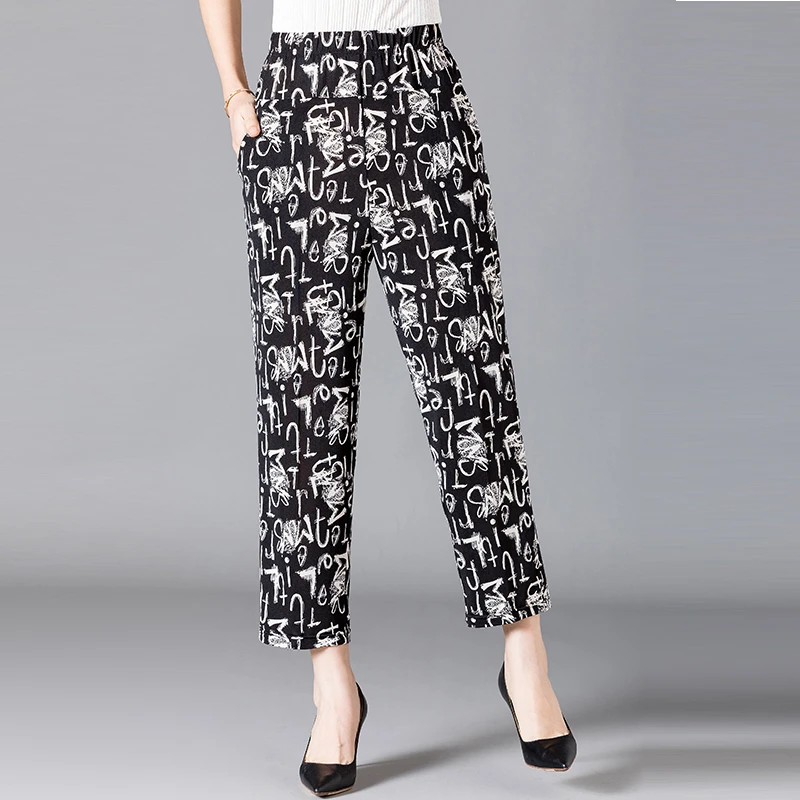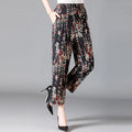XL-8XL Summer Women Harem Pants Casual High Waist Pants Printed Elastic Waist Middle Aged Women Trousers Summer Bottoms