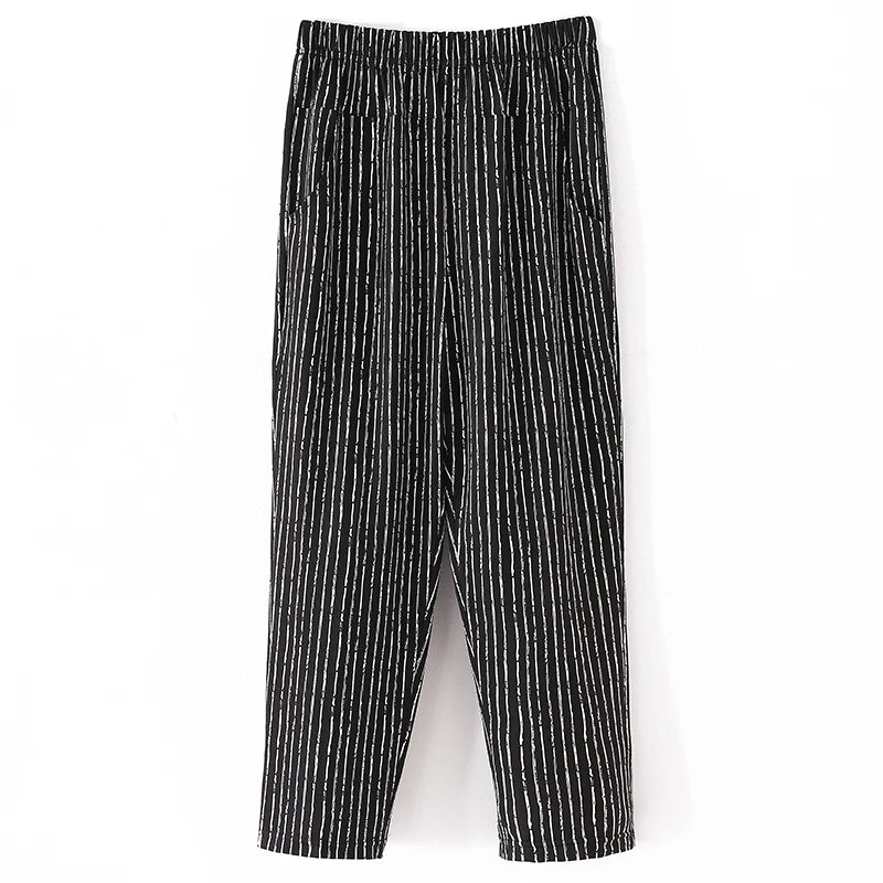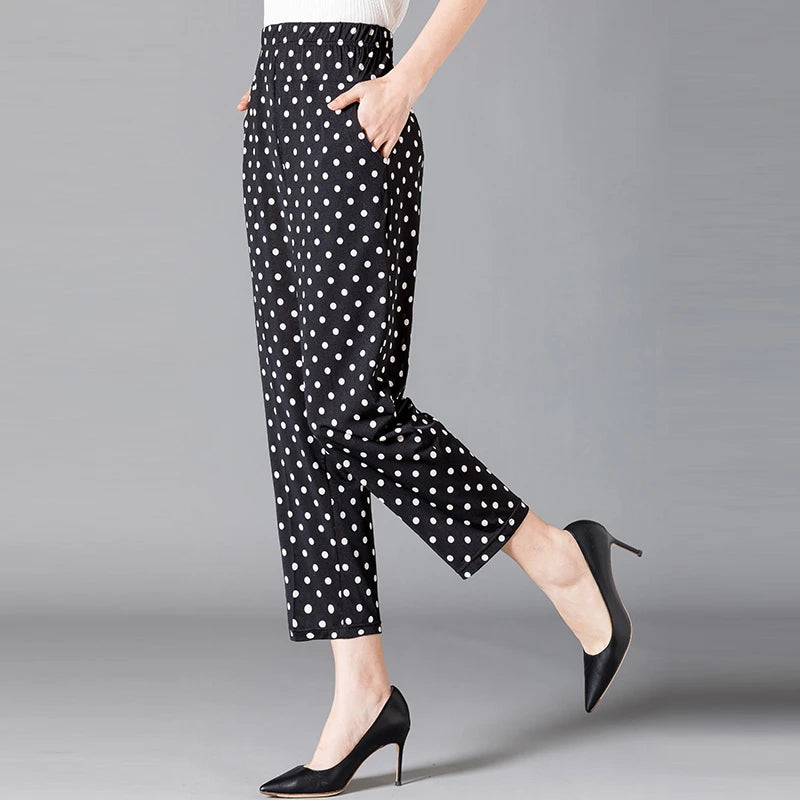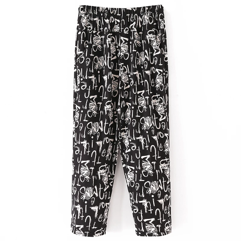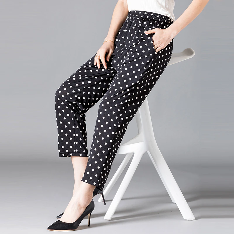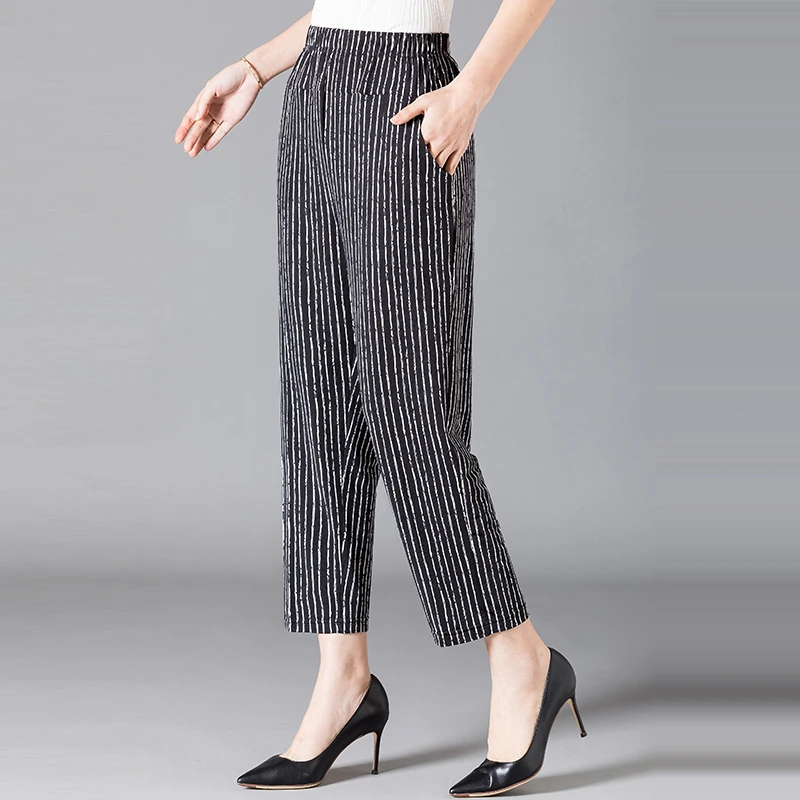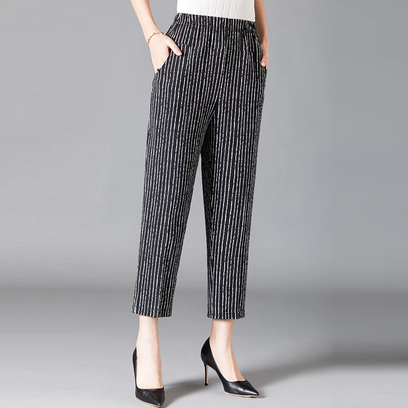 XL-8XL Summer Women Harem Pants Casual High Waist Pants Printed Elastic Waist Middle Aged Women Trousers Summer Bottoms