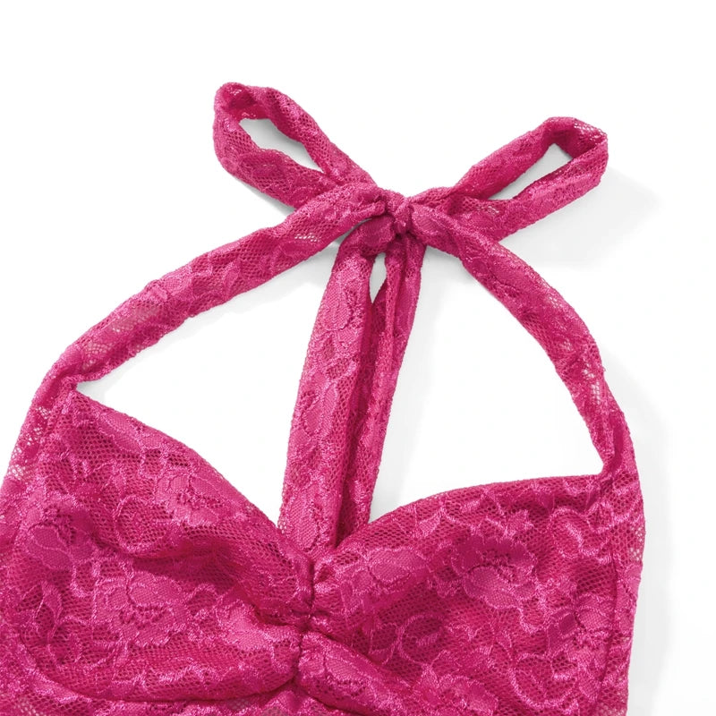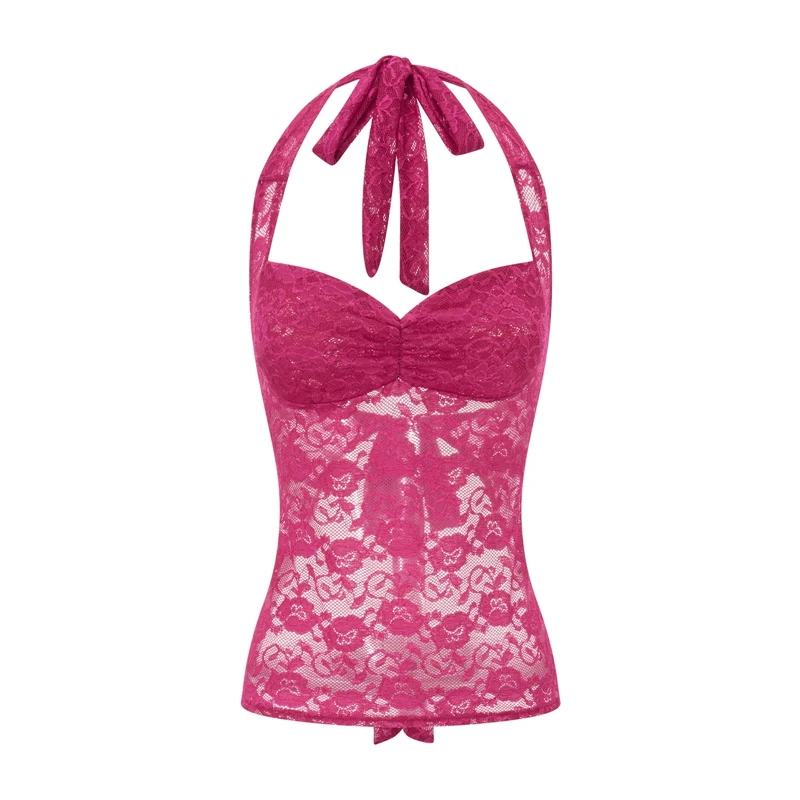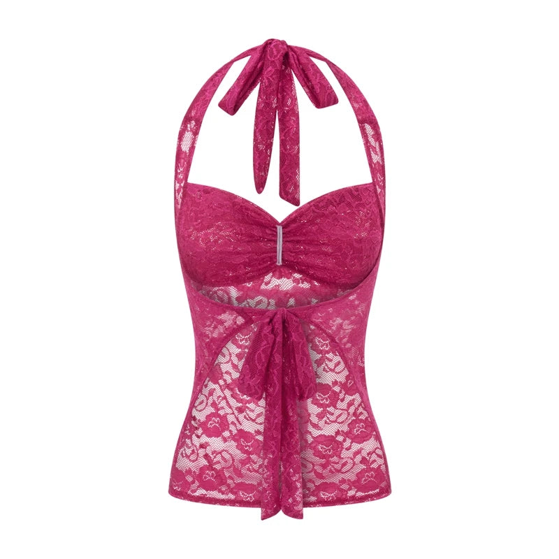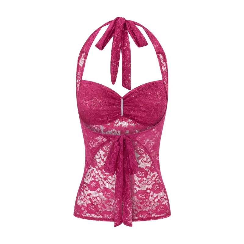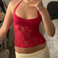 Y2K Coquette Floral Lace Crop Tops Mesh Sheer See Through Backless Mini Vest Fairycore 00s Retro Aesthetic Tie Up Halter Camis