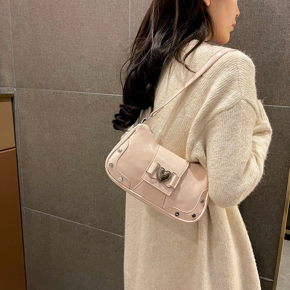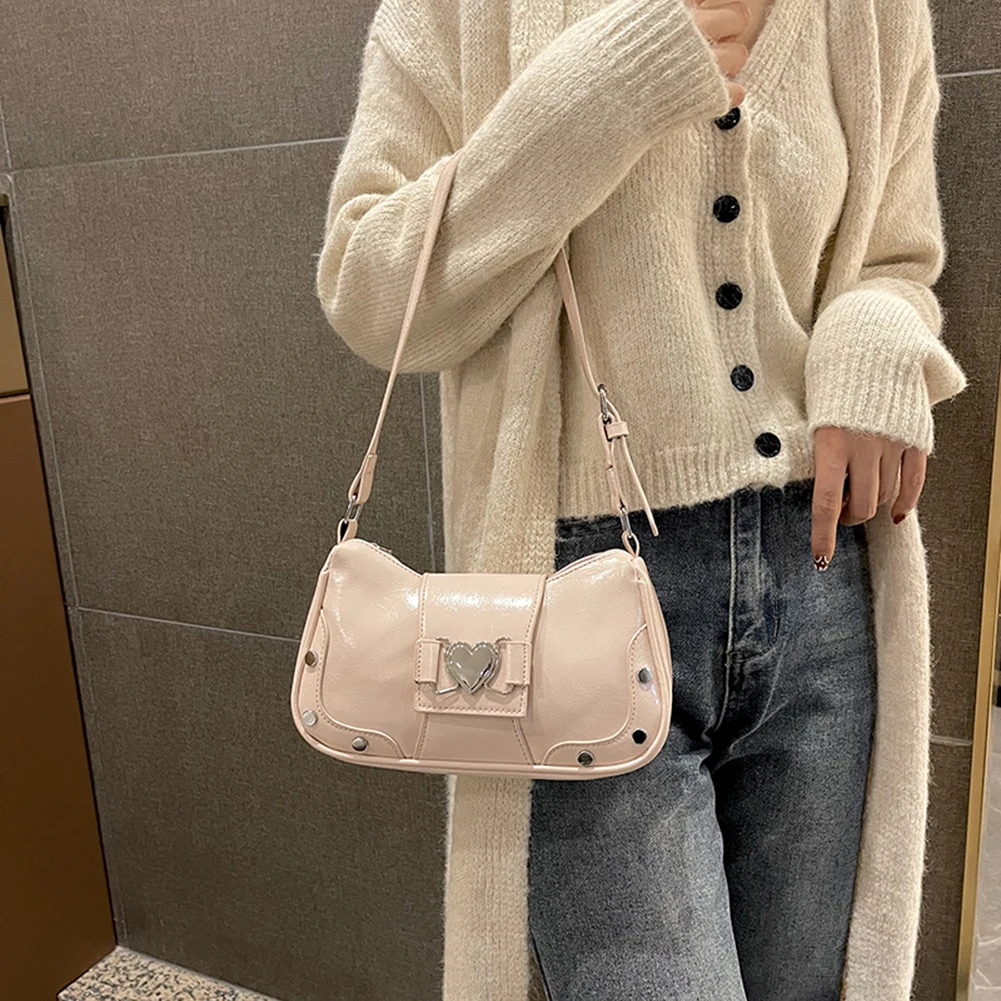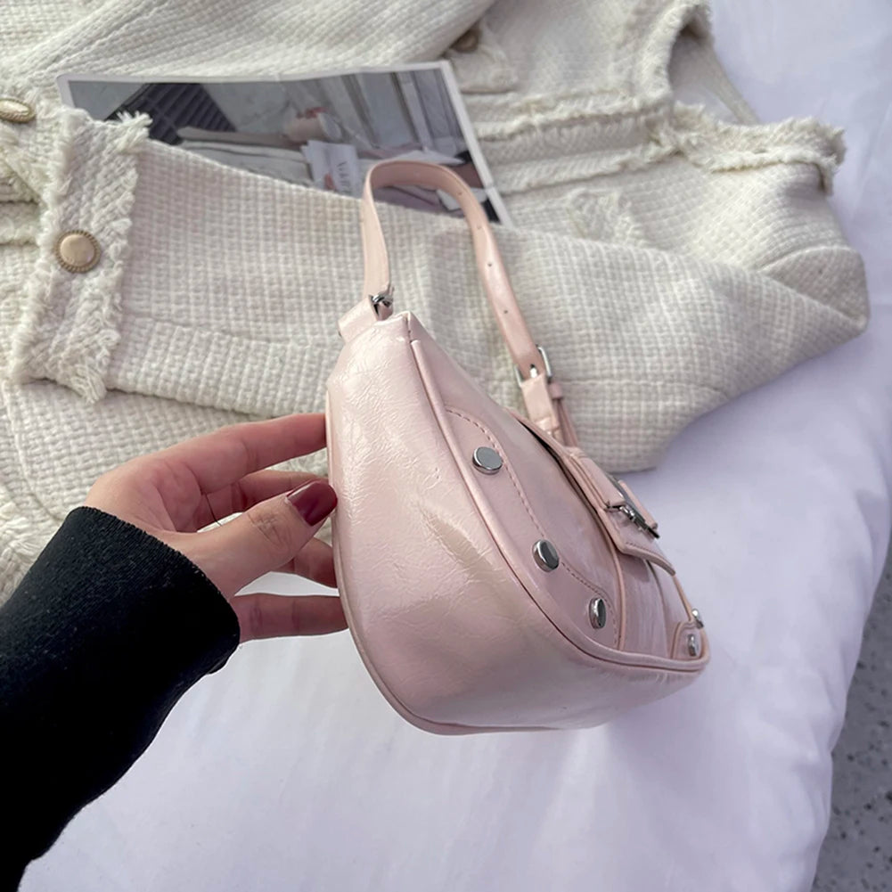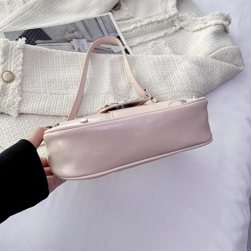 PU Leather Stylish Satchel Bags Large Capacity Women Daily Shoulder Bag Adjustable Strap Y2K Solid Color Messenger Bag