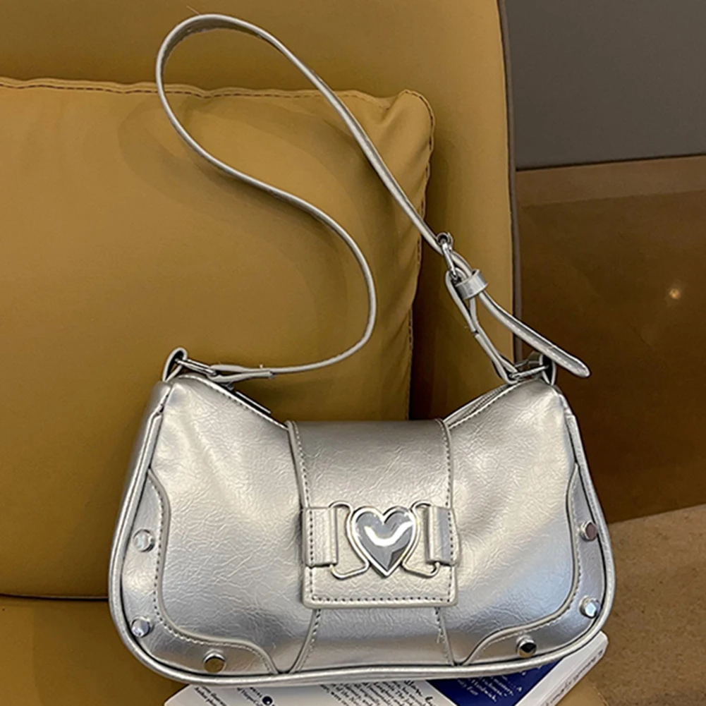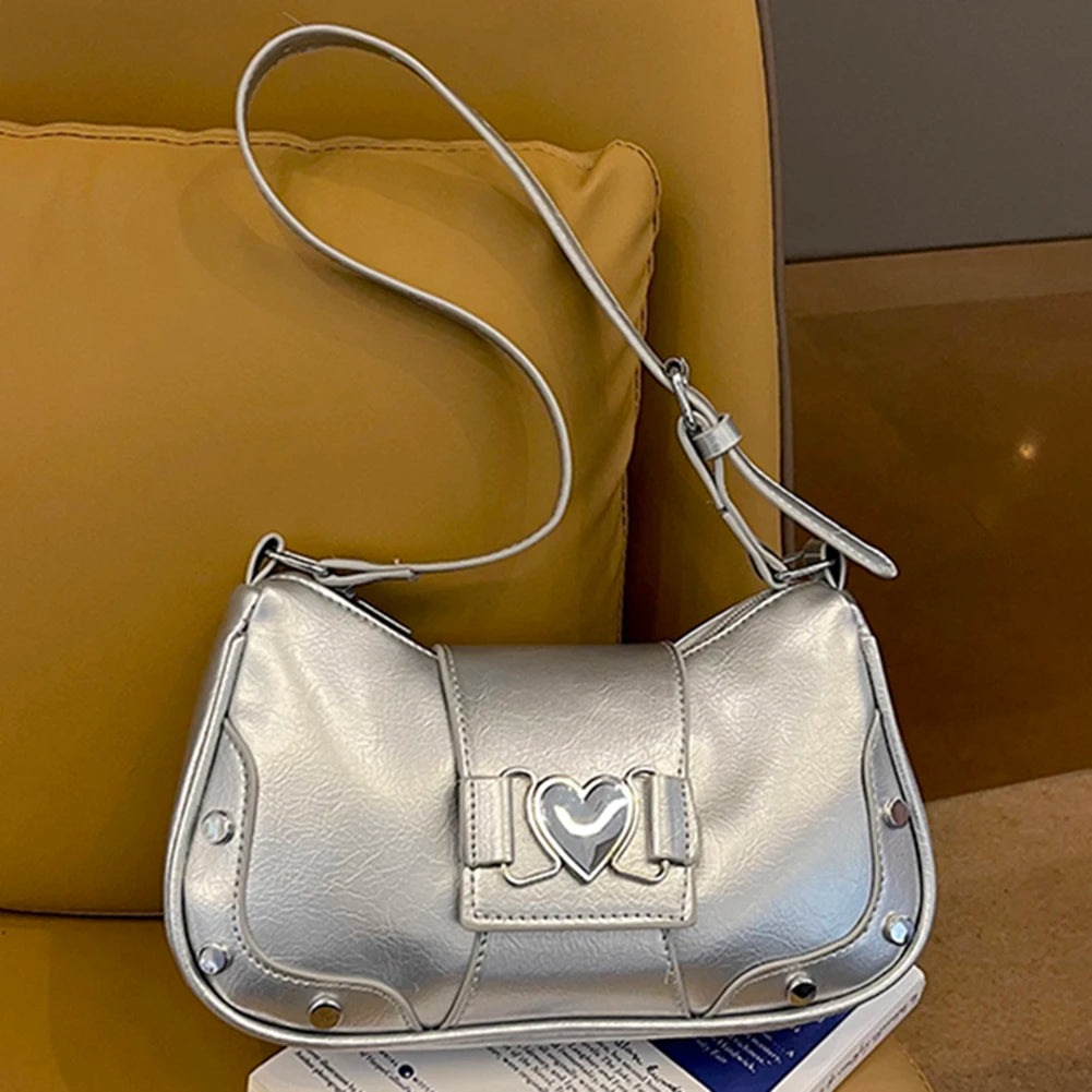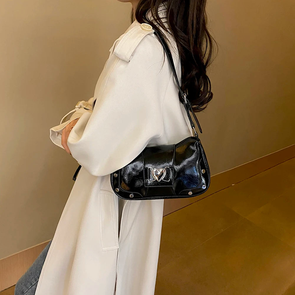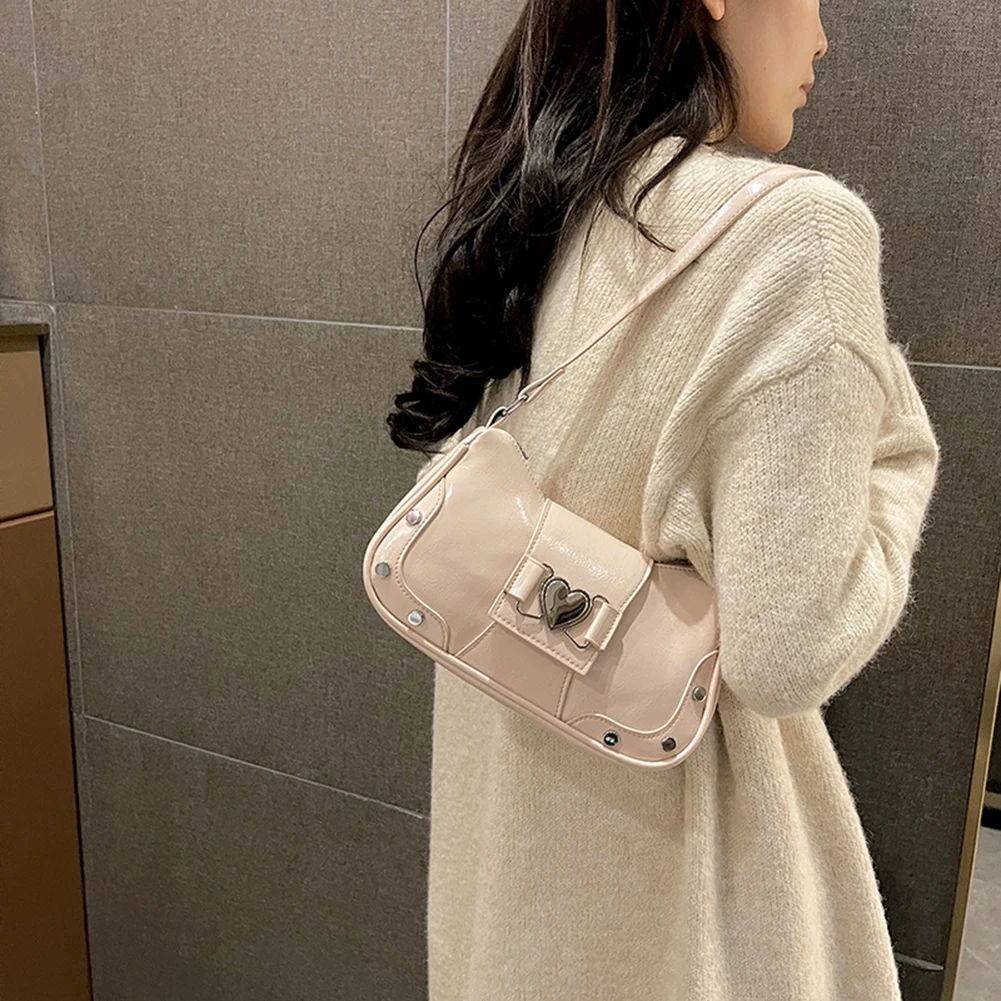 PU Leather Stylish Satchel Bags Large Capacity Women Daily Shoulder Bag Adjustable Strap Y2K Solid Color Messenger Bag